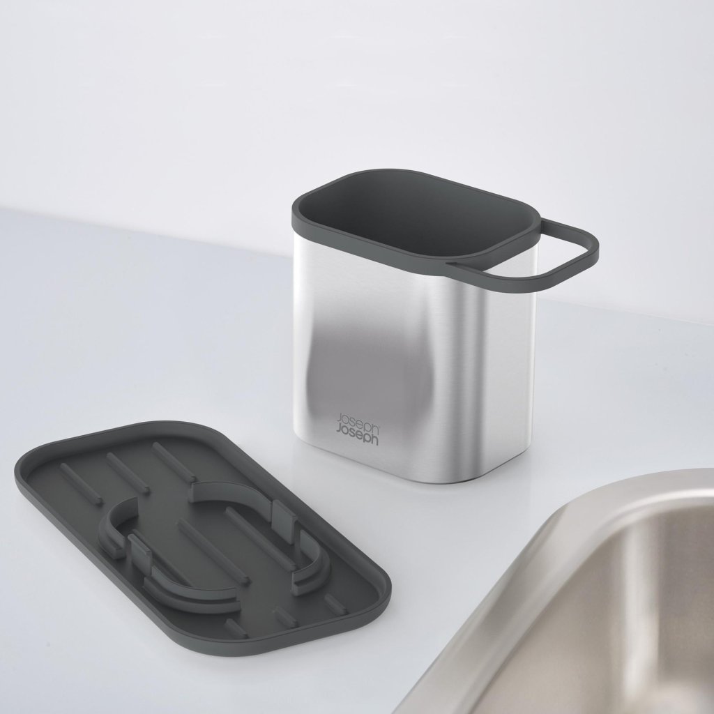 Wanneer na het diner het afwasgoed zich opstapelt, is het laatste waar je je zorgen over wilt maken een wegglijdende spons en omvallende afwasmiddel. Hier heeft alles zijn eigen plek, staat het stabiel en oogt het bijna professioneel. Bijna alsof je een plan had.