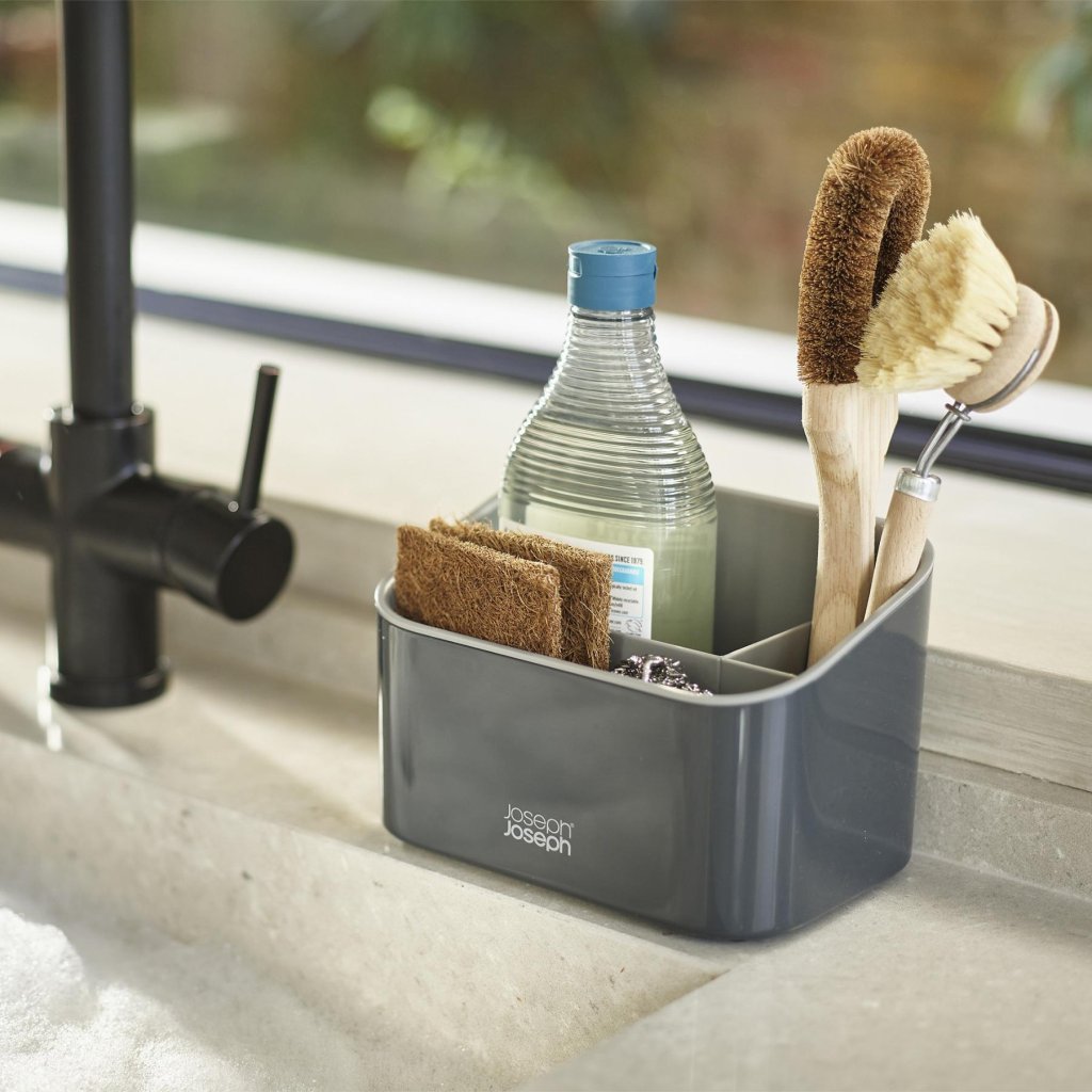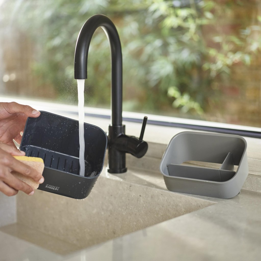 Er zijn momenten dat de spons, de borstel en het afwasmiddel zich als een kleine kolonie zonder leiding rond de gootsteen verspreiden. Deze organizer stelt duidelijke regels voor hen op en verdeelt de ruimte zo dat alles zijn plaats heeft. Ineens oogt de omgeving van de gootsteen niet meer als een geïmproviseerd pakhuis, maar als een doordacht onderdeel van de keuken.