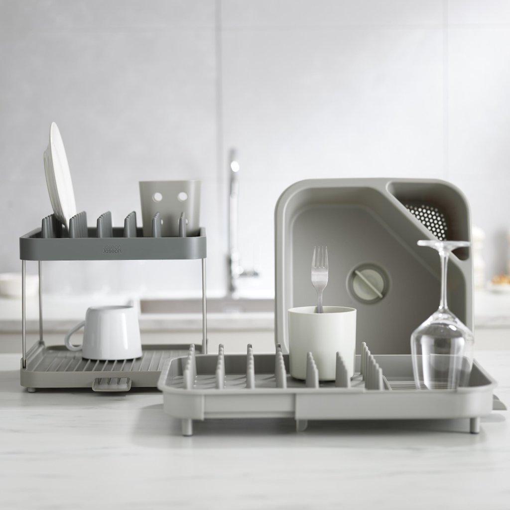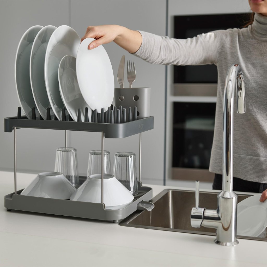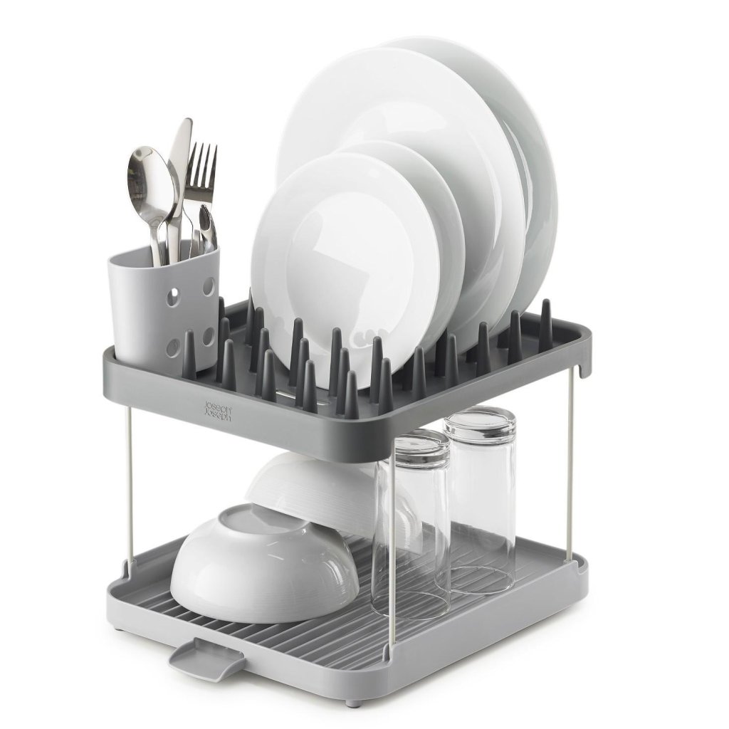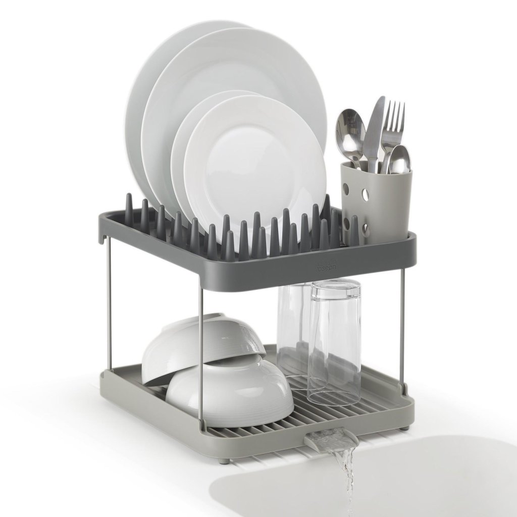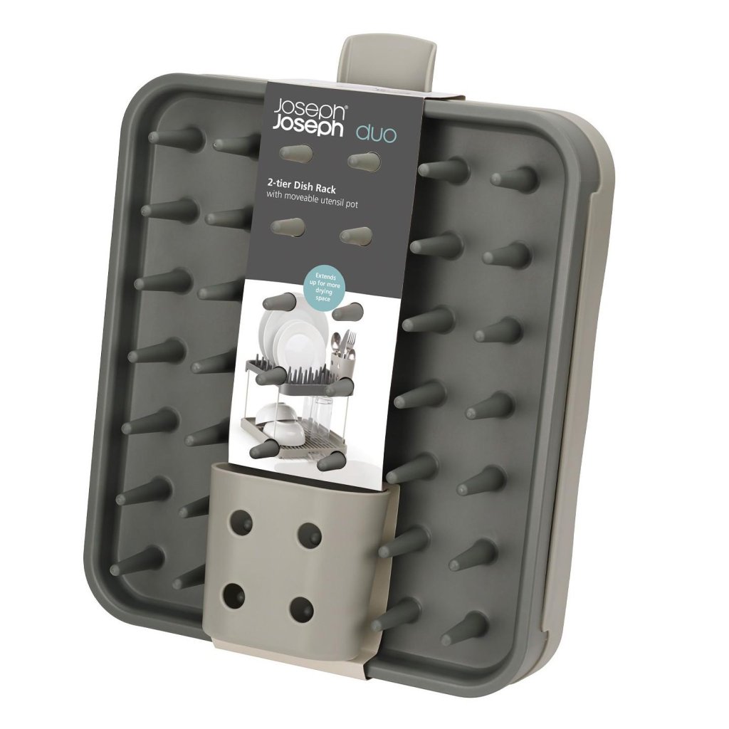 - De Joseph Joseph DUO dubbellaagse afdruiper biedt een praktische oplossing voor het drogen van servies op een kleiner werkblad dankzij slim gebruik van de hoogte.