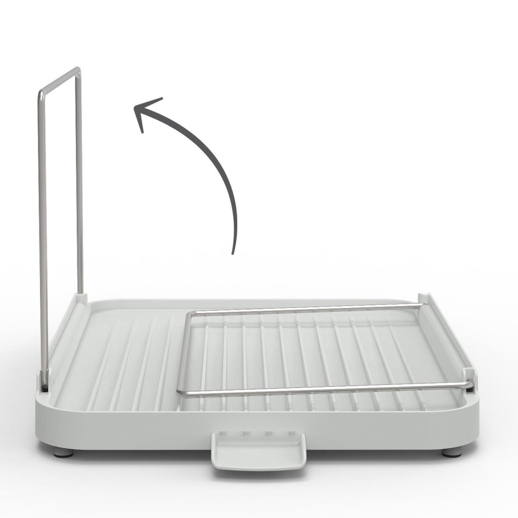 - De tweelaagse oplossing bespaart ruimte in de breedte en vergroot tegelijkertijd de capaciteit van de afdruiprek zonder dat er meer ruimte op het aanrecht nodig is.