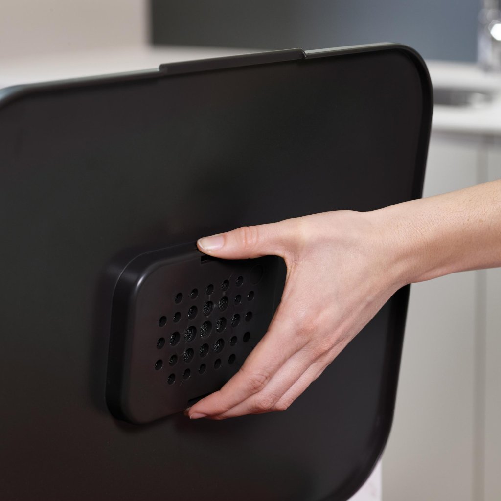 - Twee hoofdbakken van 30 liter maken eenvoudige scheiding van gewoon afval en gescheiden materialen mogelijk zonder de noodzaak van extra bakken.
