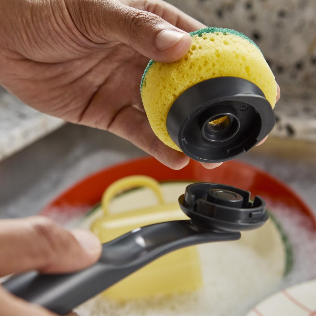 Soms is één goed hulpmiddel genoeg om de gootsteen er niet meer uit te laten zien als een plek van laatste wanhoop. Deze borstel heeft een vervangbare kop, dus als de borstelharen hun werk hebben gedaan, vervang je ze gewoon door een nieuwe. Minder afval, minder excuses, meer schone borden.