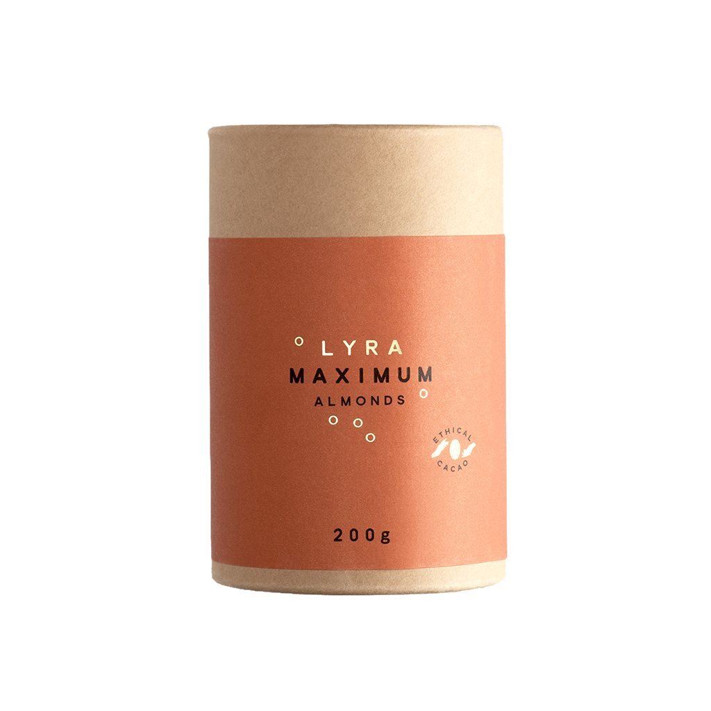 Amandelen in nougat- en karamelchocolade MAXIMUM 200 g, LYRA