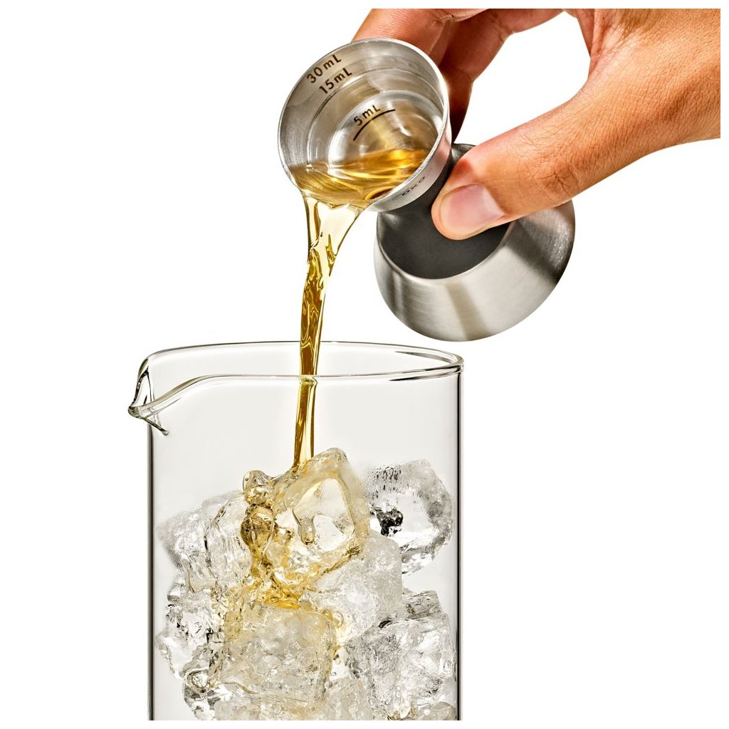 - dubbelzijdige barmanmaatbeker van robuust roestvrij staal