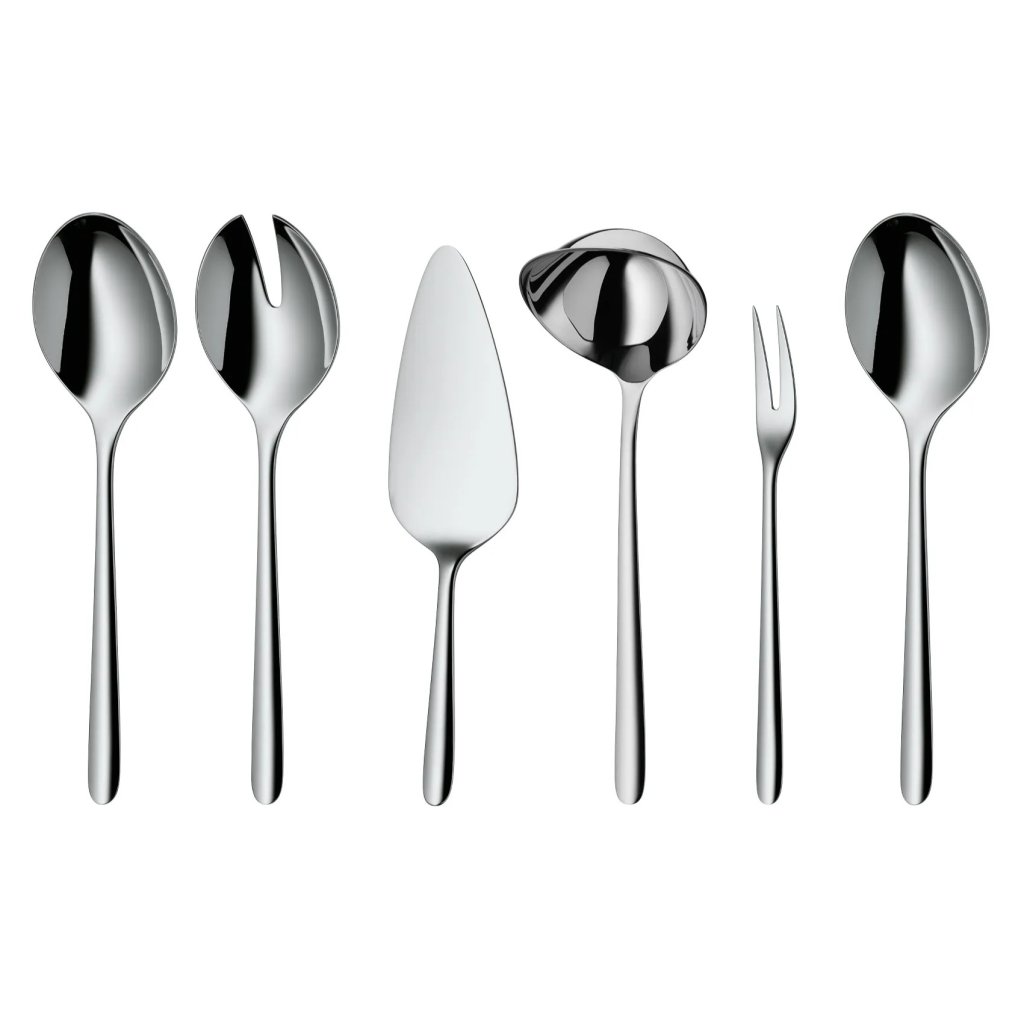 - naast het bestek bevat de set ook serveeraccessoires zoals saladebestek, opscheplepel en taartschep