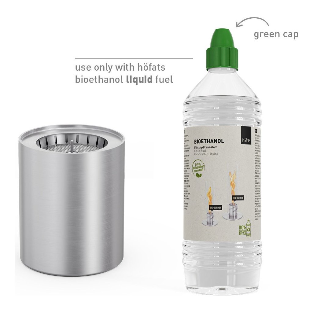 - Het is uitsluitend ontworpen voor gebruik met vloeibare bio-ethanol van Höfats, wat zorgt voor een schone en rookloze verbranding zonder onaangename geuren.