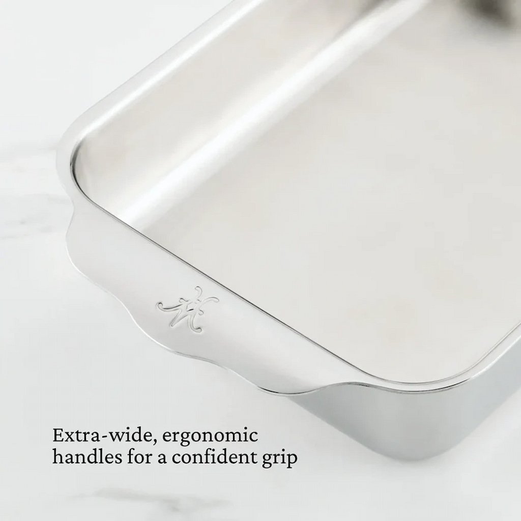 - De ergonomisch gevormde brede handgrepen zorgen voor een stevige grip, zelfs met keukenhandschoenen, zodat je hem gemakkelijk en veilig uit de oven kunt dragen.