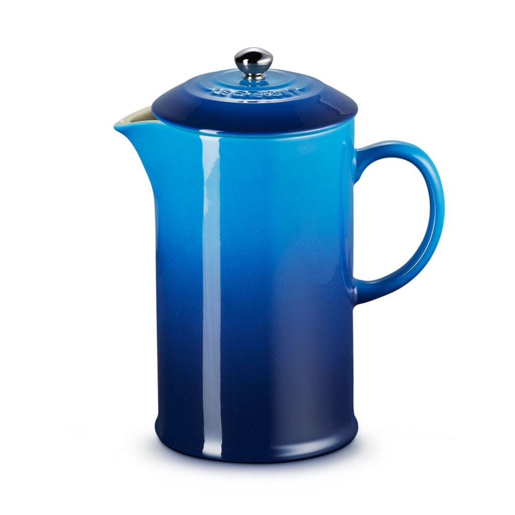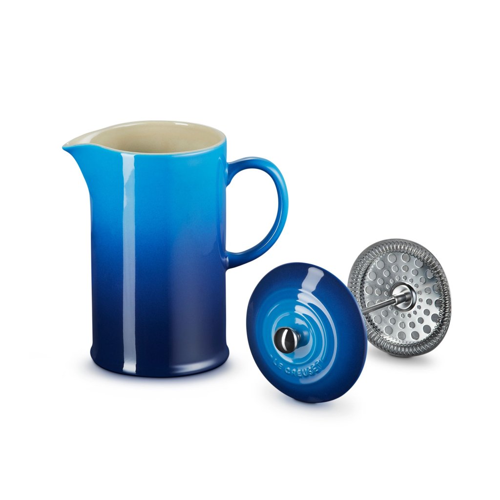 - Cafetière Le Creuset in de kleur AZURE combineert iconisch Frans design, het traditionele ritueel van de koffiebereiding en uitzonderlijke kwaliteit die jarenlang meegaat.