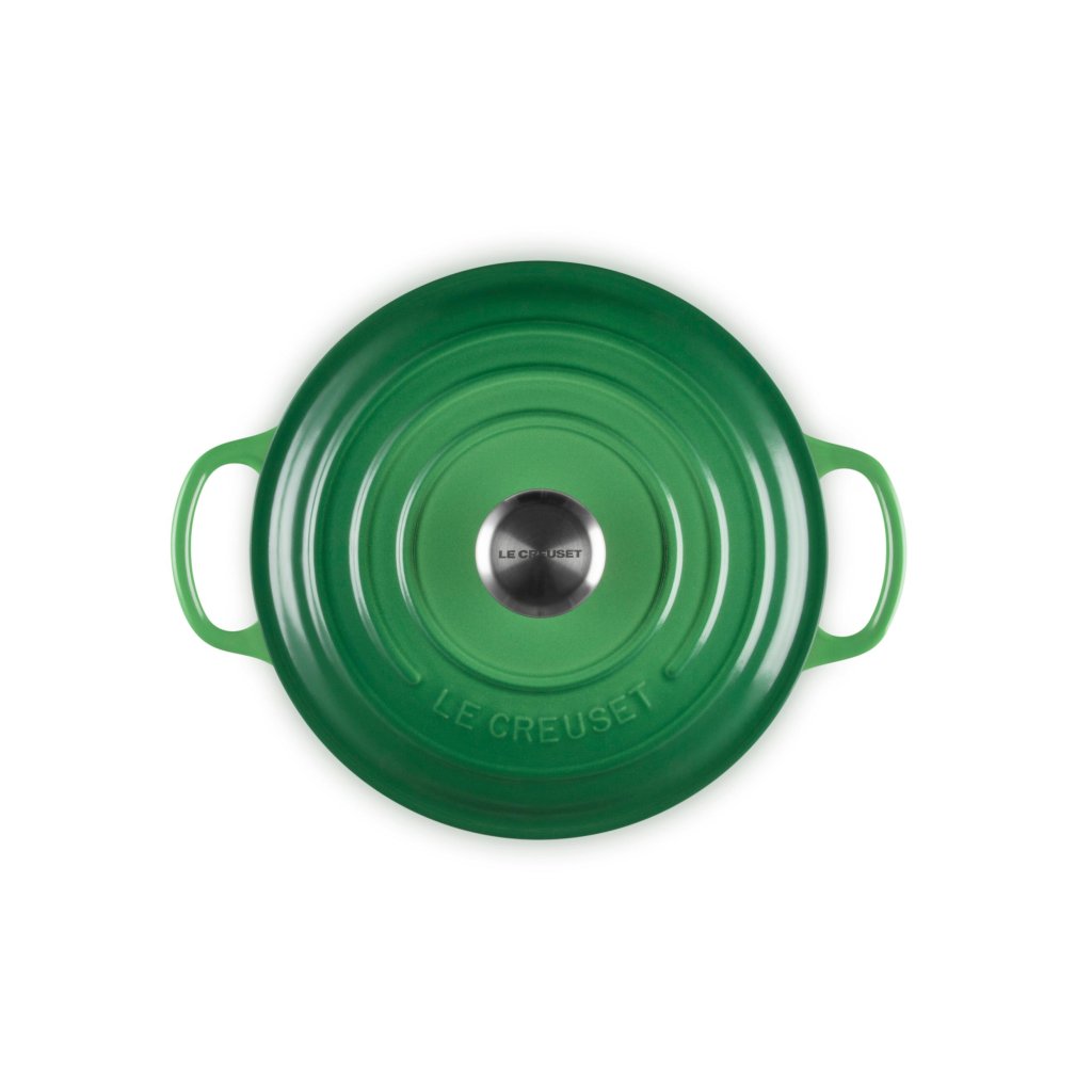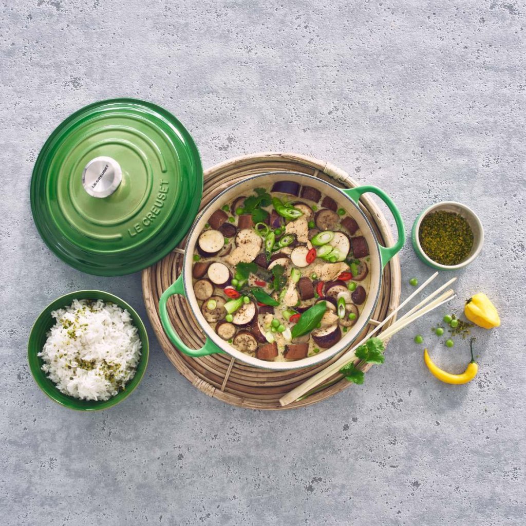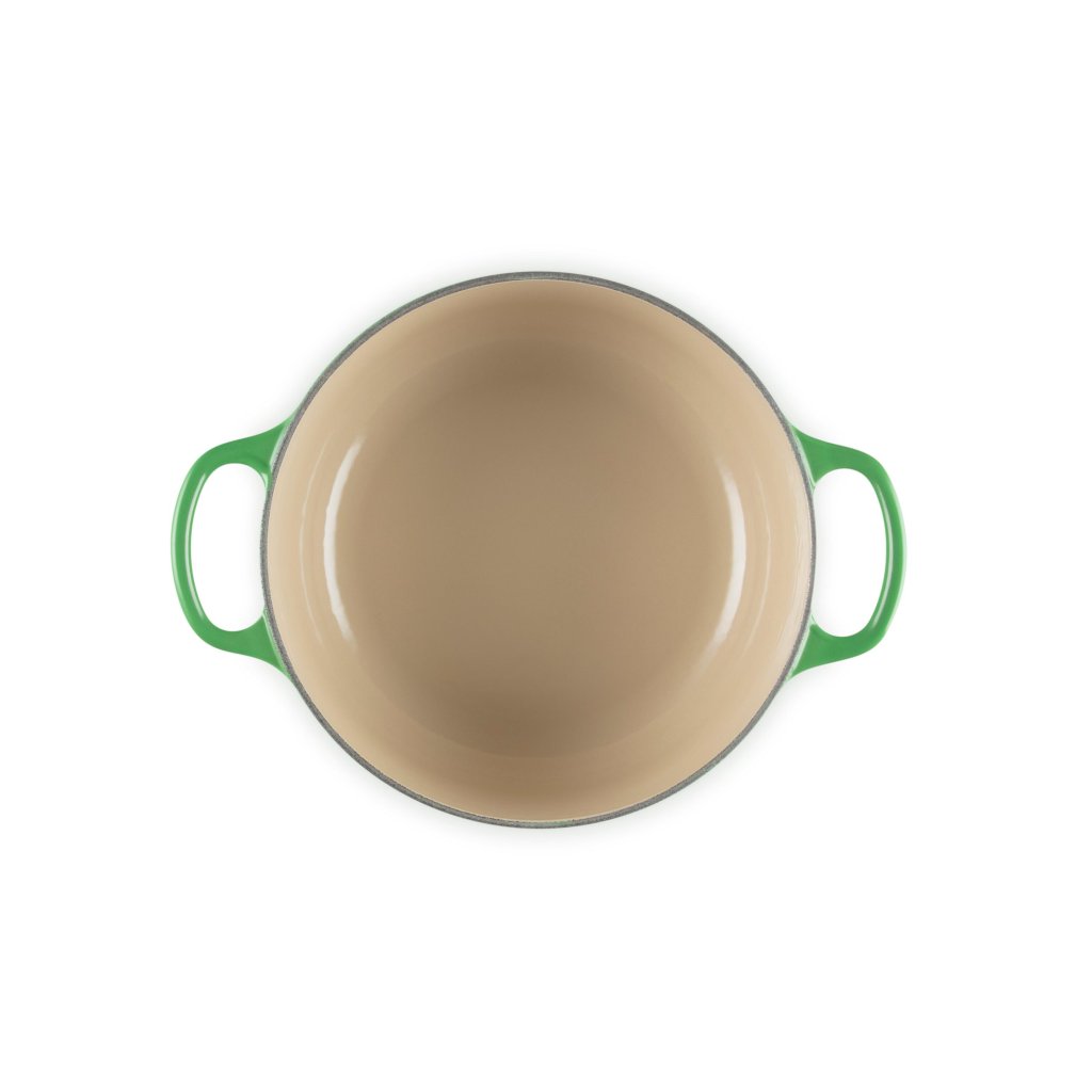 - Het iconische gietijzeren exemplaar casserole pan Le Creuset in de kleur BAMBOO is een culinaire klassieker die al meer dan een eeuw keukens over de hele wereld verrijkt.