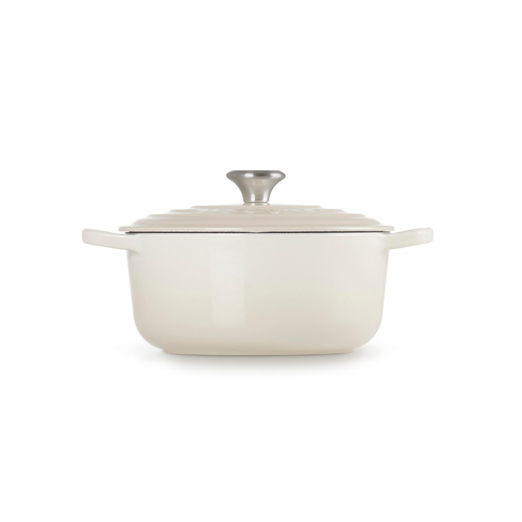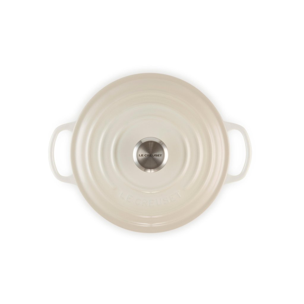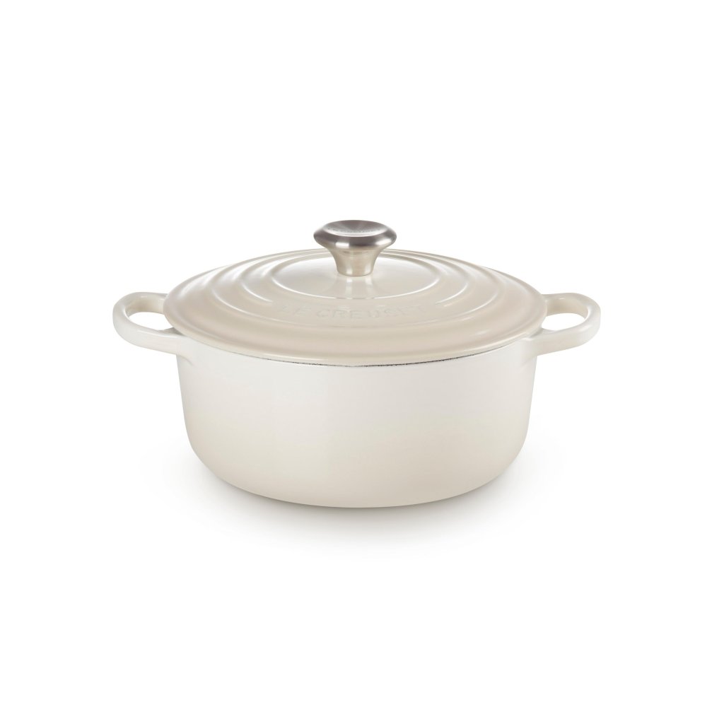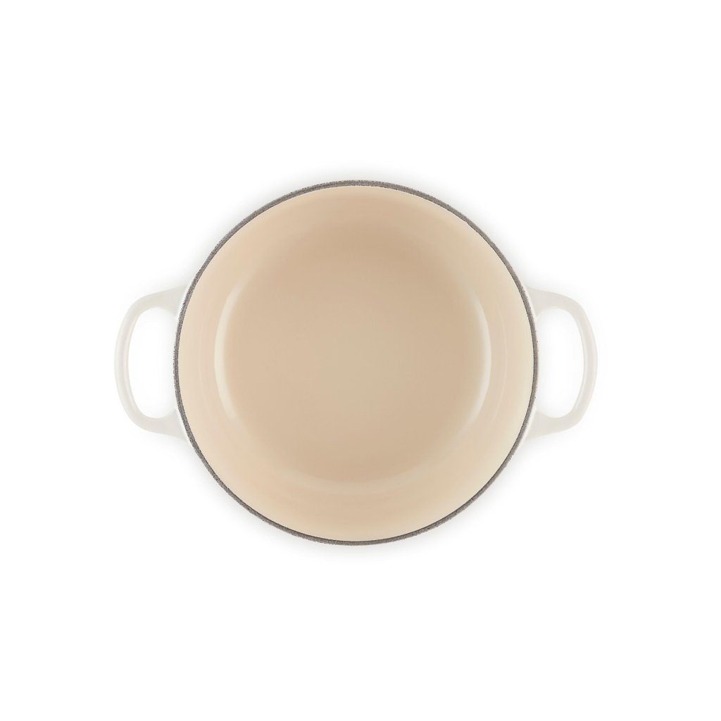- Het iconische gietijzeren exemplaar casserole pan Le Creuset in de kleur MERINGUE is een culinaire klassieker die al meer dan een eeuw keukens over de hele wereld verrijkt.