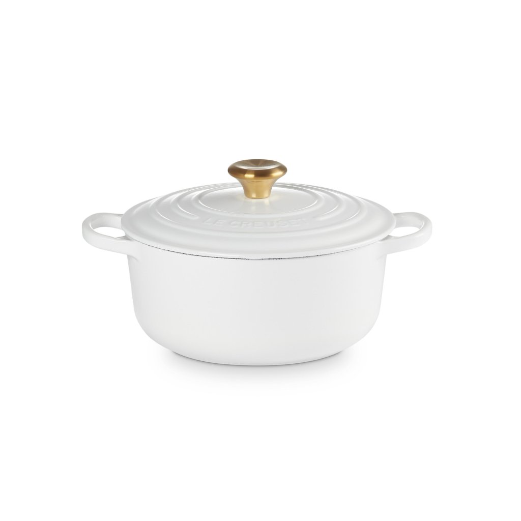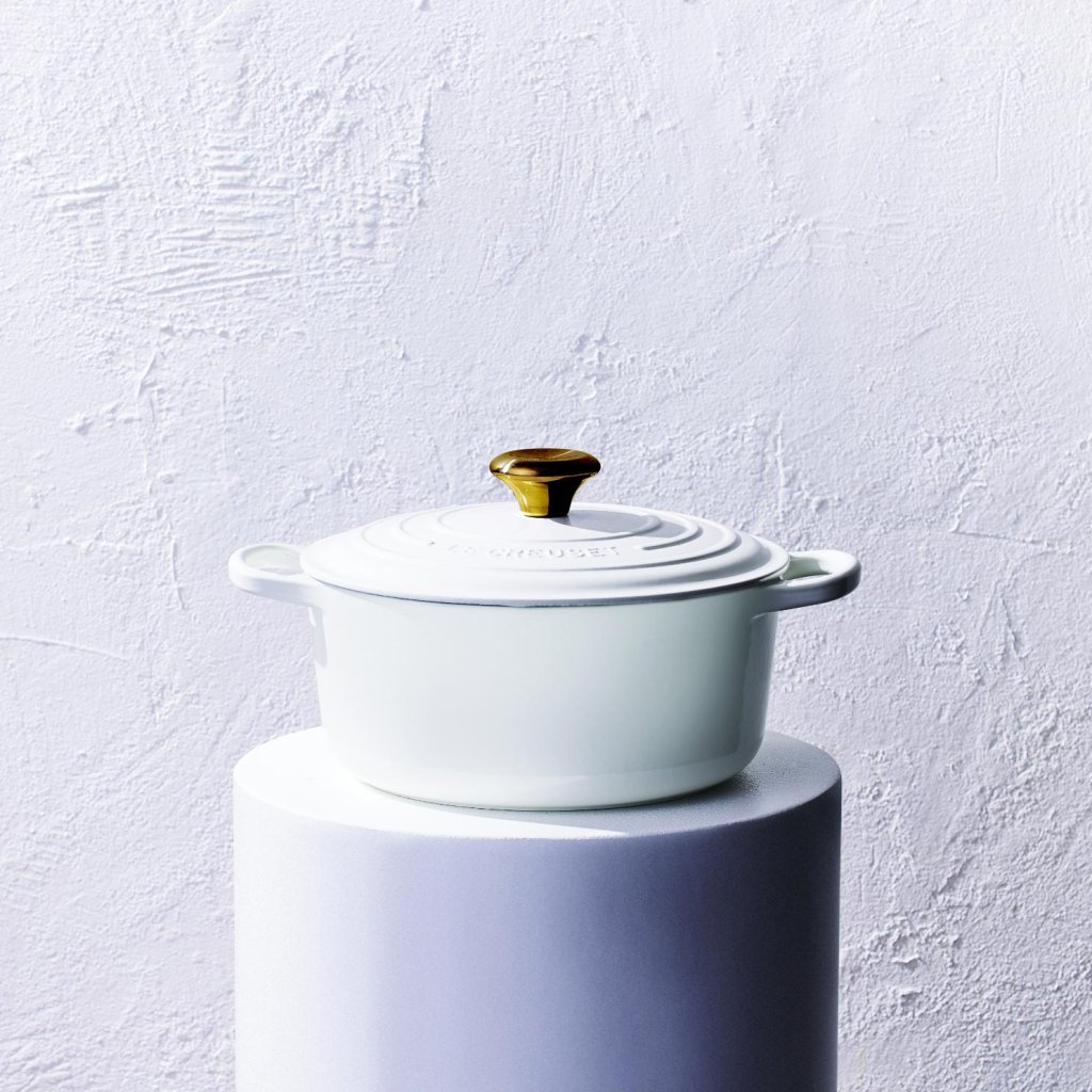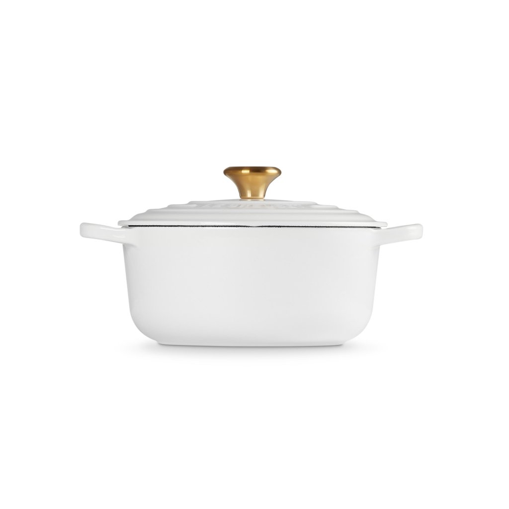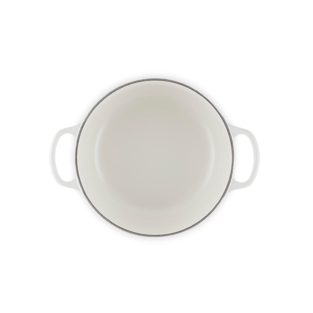- Het iconische gietijzeren exemplaar casserole pan Le Creuset in de kleur WHITE is een culinaire klassieker die al meer dan een eeuw keukens over de hele wereld verrijkt.