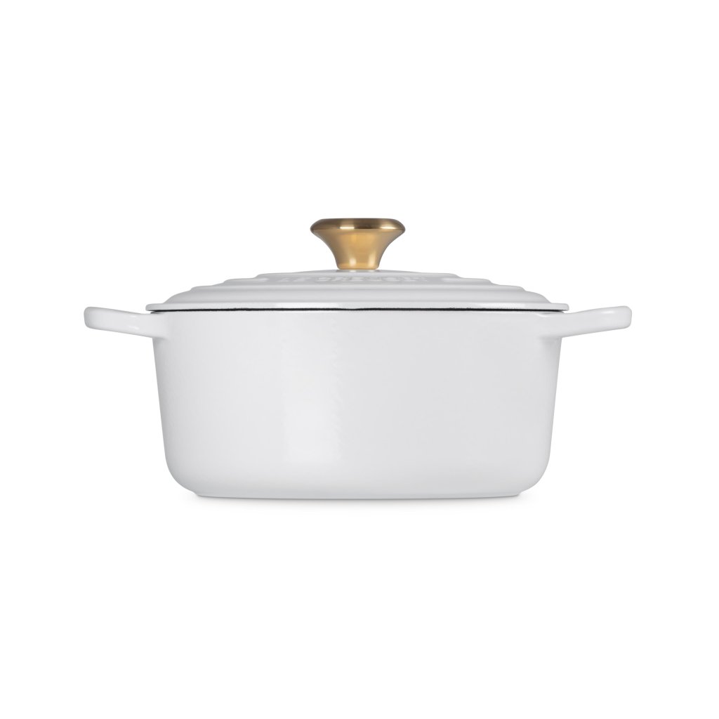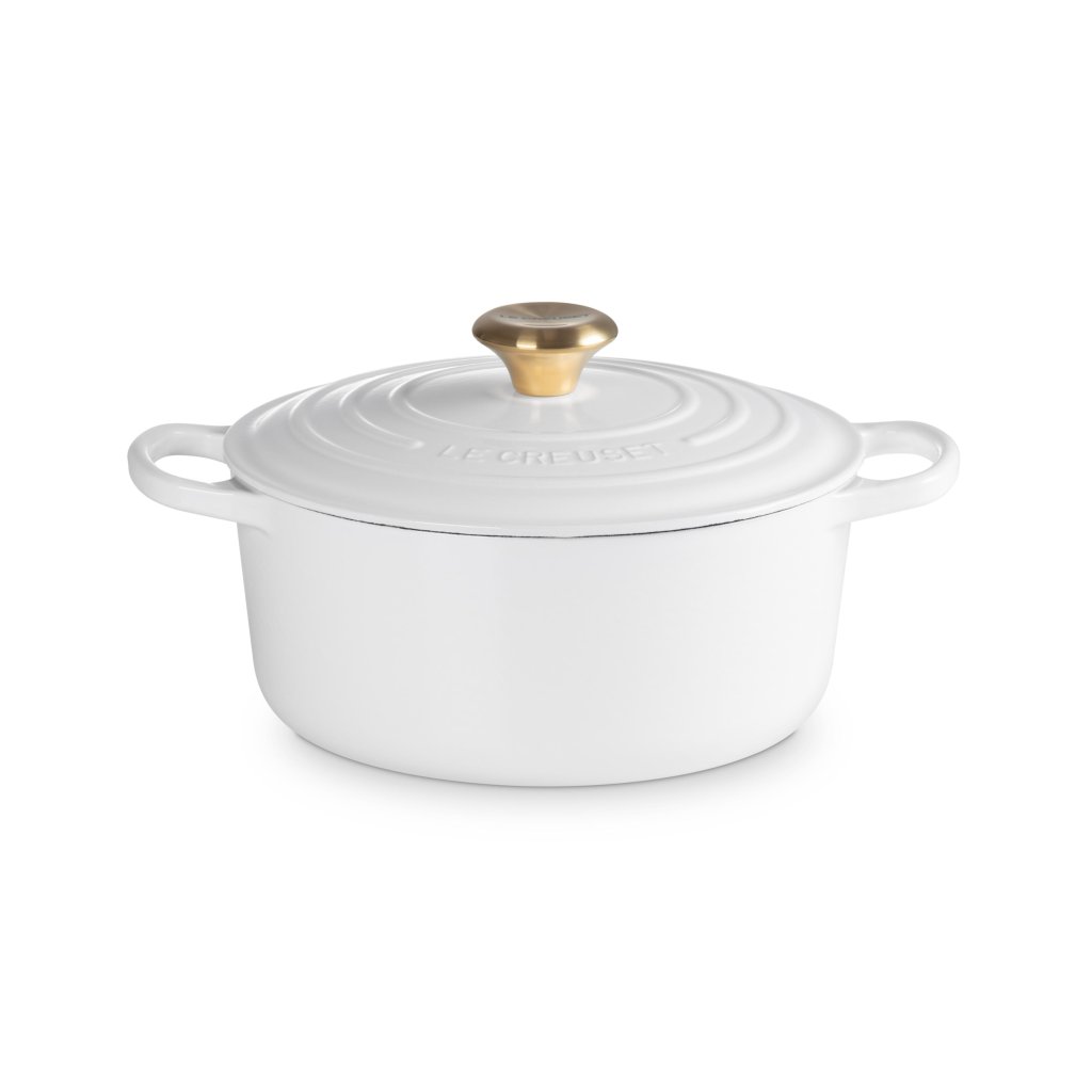 - Het iconische gietijzeren exemplaar casserole pan Le Creuset in de kleur WHITE is een culinaire klassieker die al meer dan een eeuw keukens over de hele wereld verrijkt.