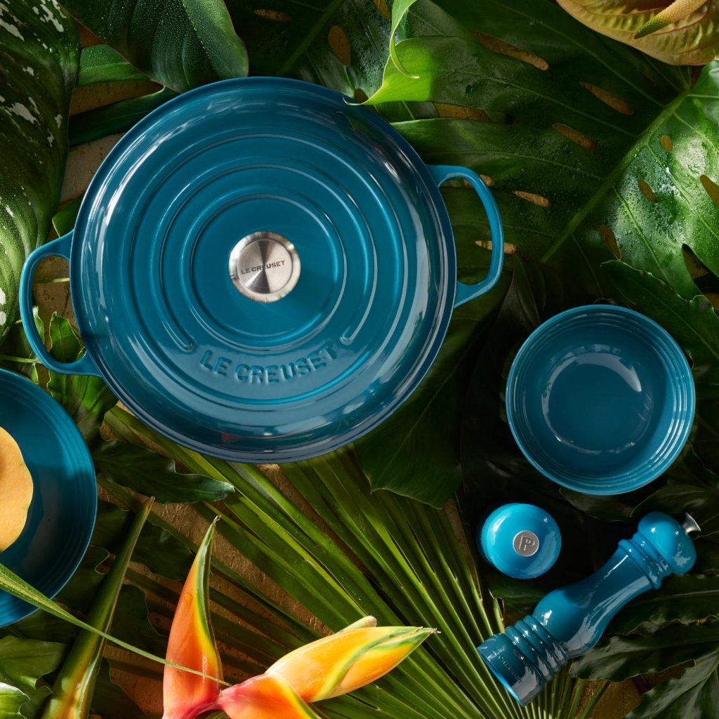 - De platte gietijzeren pan casserole pan Le Creuset in de kleur DEEP TEAL wordt in Frankrijk gemaakt en is een van de legendarische exemplaren van het merk, ideaal om te stoven, braden, bakken en stoven voor 4 - 6 personen.