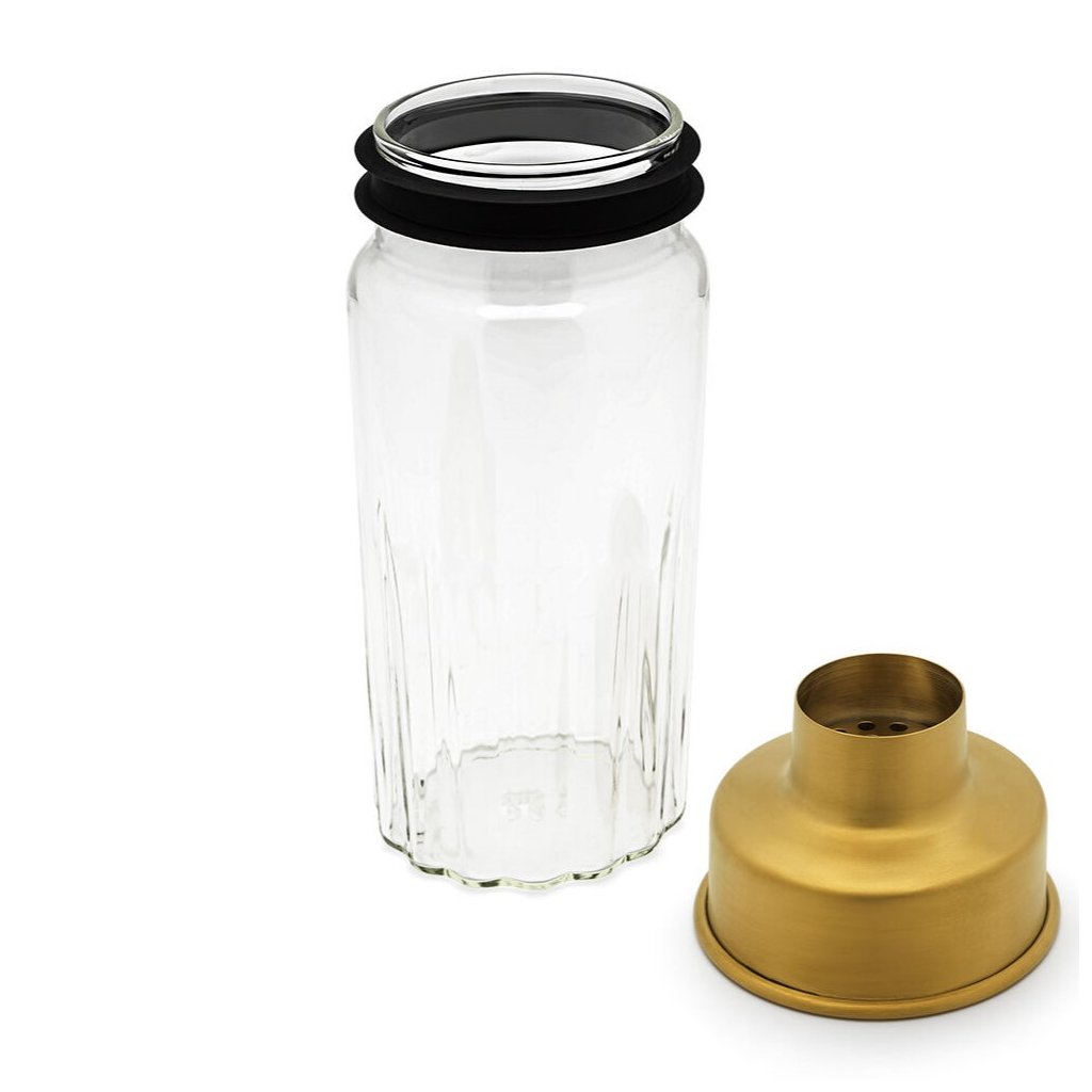 - de combinatie van helder glas en gouden roestvrijstalen deksel creëert een elegante look die opvalt aan elke bar
