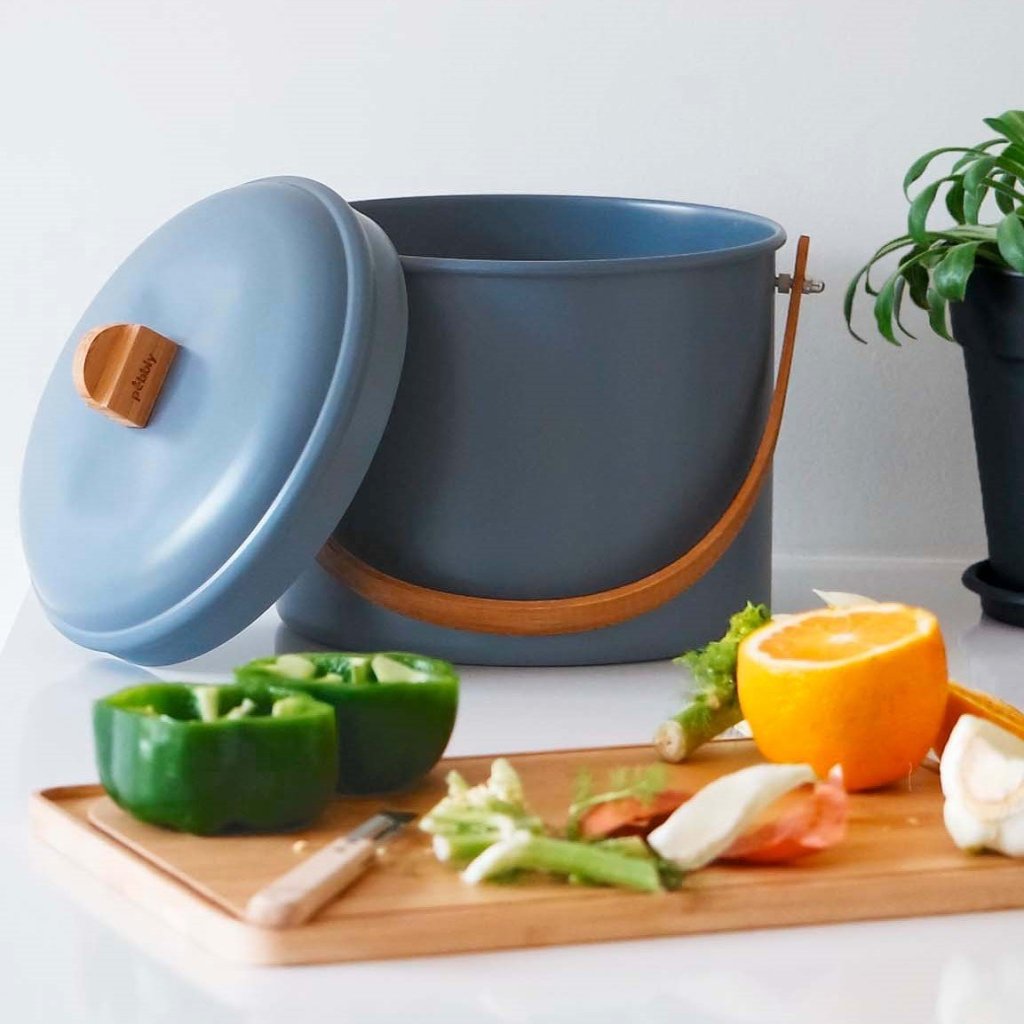 Compostbak NBA196 7 l, blauw, staal / bamboe, Pebby