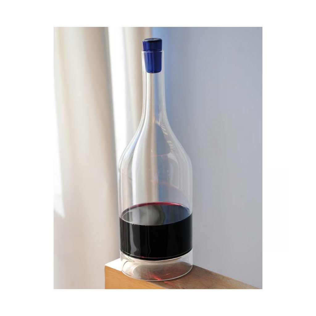 - glazen stop in blauwe kleur beschermt wijn tegen stof