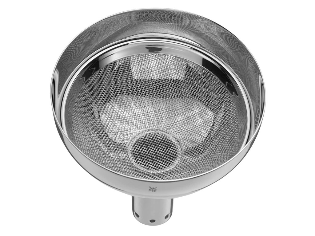 Deze Vino-decanteertrechter van gepolijst Cromargan® (roestvrij staal 18/10) ziet er niet alleen nobel uit, hij verfijnt ook uw wijn. De geïntegreerde zeef vangt de kurkresten op bij het inschenken in de karaf. De fijne gaatjes aan het einde van de trechter verdelen de gedecanteerde wijn over de hele breedte van de karaf. Dit proces geeft de gedecanteerde wijn veel lucht die nodig is om zijn typische bouquet te ontwikkelen.