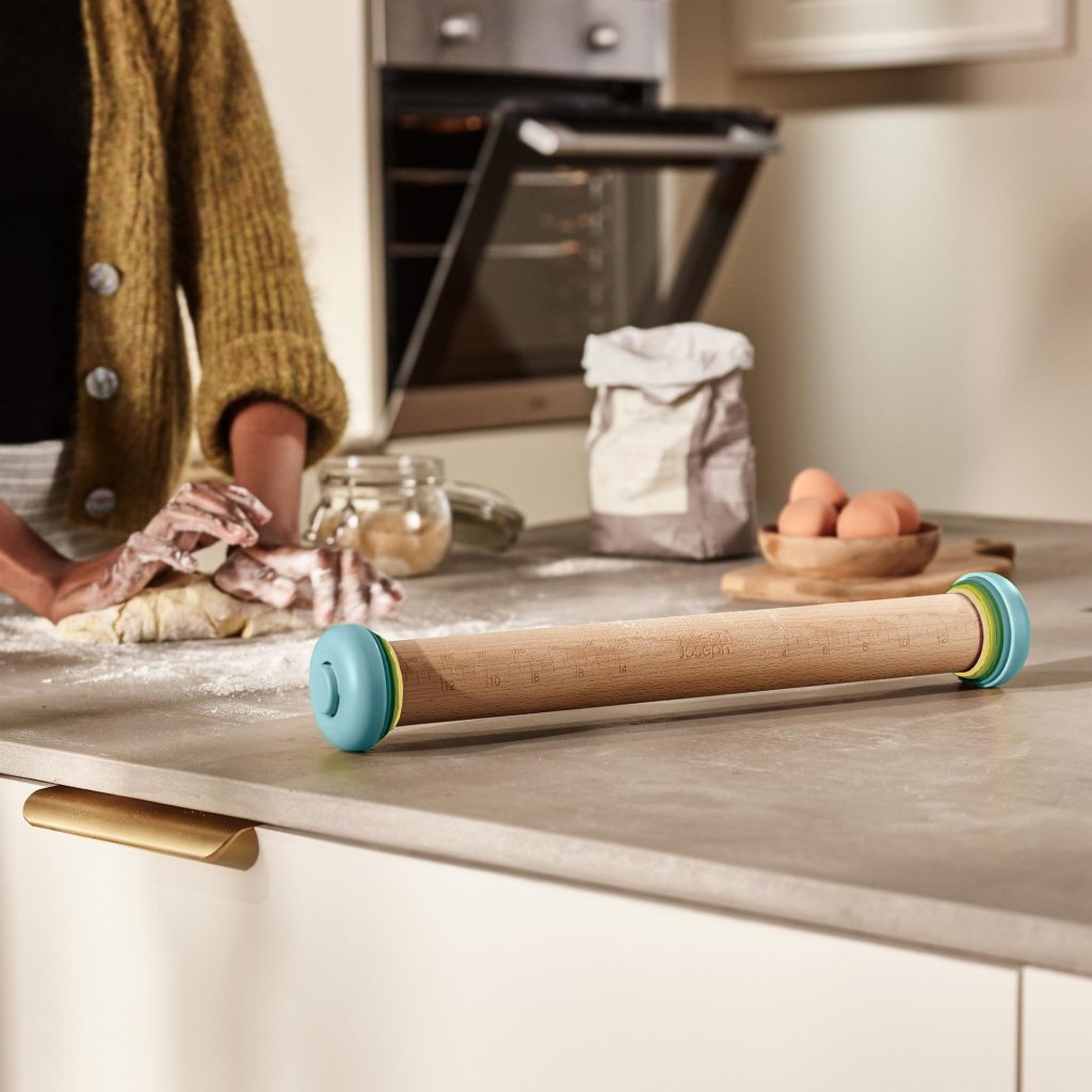- Verstelbare deegroller Joseph Joseph DUO OPAL maakt het mogelijk om deeg nauwkeurig uit te rollen tot de gewenste dikte voor het bakken van koekjes, taarten en huisgemaakte pizza.