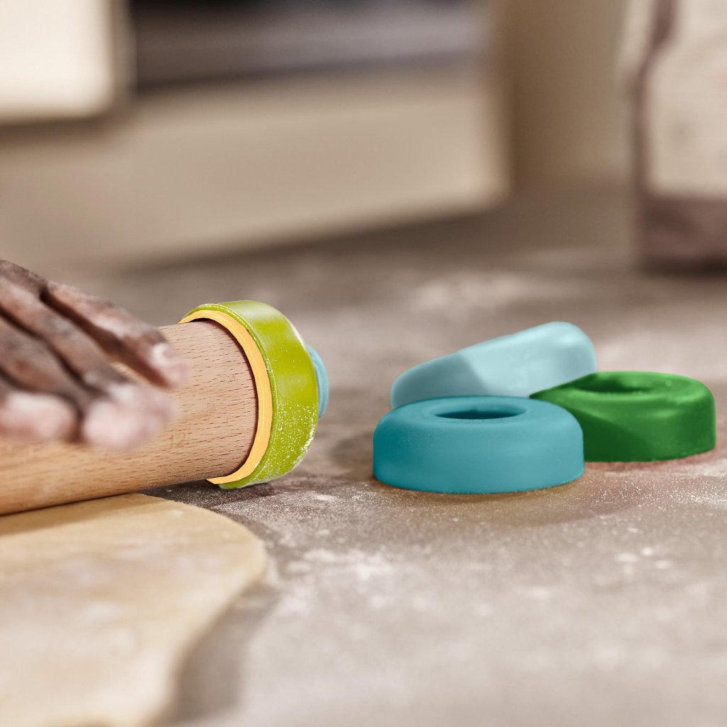 - Kleurcodering van de individuele ringen zorgt voor overzicht en vergemakkelijkt de oriëntatie tijdens het werk, zonder dat het deeg uitgebreid gemeten hoeft te worden.