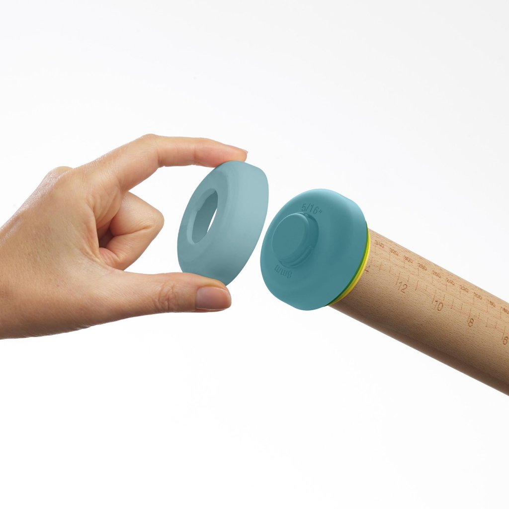 - Zonder de ringen kan de deegroller worden gebruikt als een klassiek model voor het vrij uitrollen van deeg naar eigen inschatting.