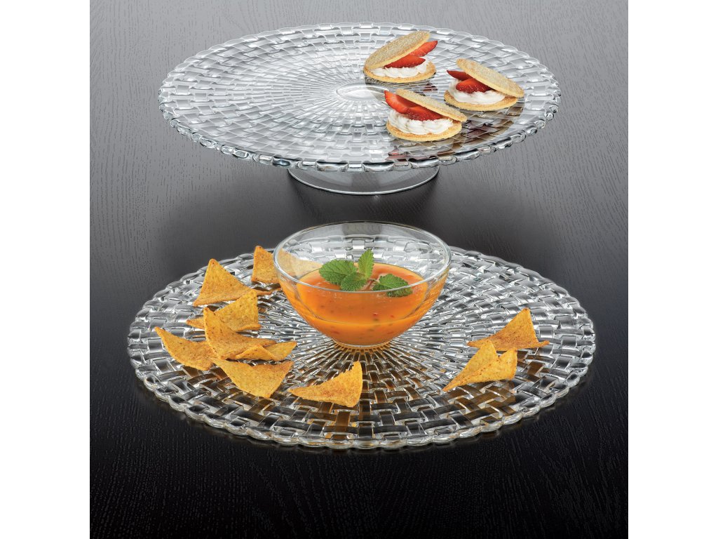 U zult het dienblad van figuurglas met een helder deksel met een praktisch rond handvat ook waarderen tijdens zomerse barbecues en diners op het terras. Uw voedsel wordt veilig beschermd tegen ongewenste insectenzuigers. Dankzij het deksel blijven diverse lekkernijen langer vers, blijft het gebak knapperig en blijft de cake mooi vochtig. Het dienblad met voet heeft ook een 2-in-1 functie en als je het omdraait, krijg je het originele dienblad met platte frietjes en dipsaus. Serveer elegant en slim.