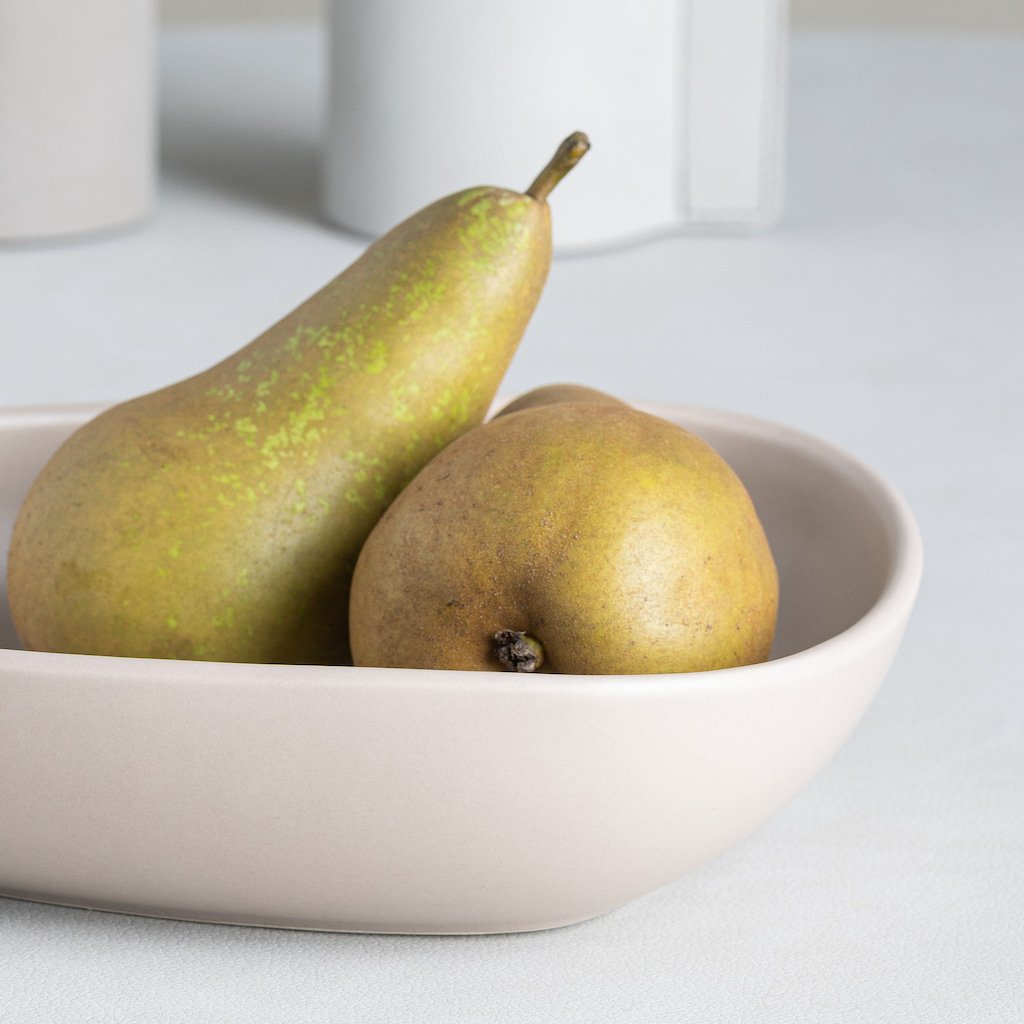 - diep bord CURVE in een zachte beige tint is een ideale keuze voor het serveren van pasta, salades of vers fruit