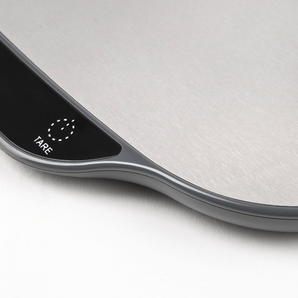 - het roestvrijstalen weegoppervlak van 26,5 x 22 cm biedt voldoende ruimte voor verschillende containers en is gemakkelijk af te wassen