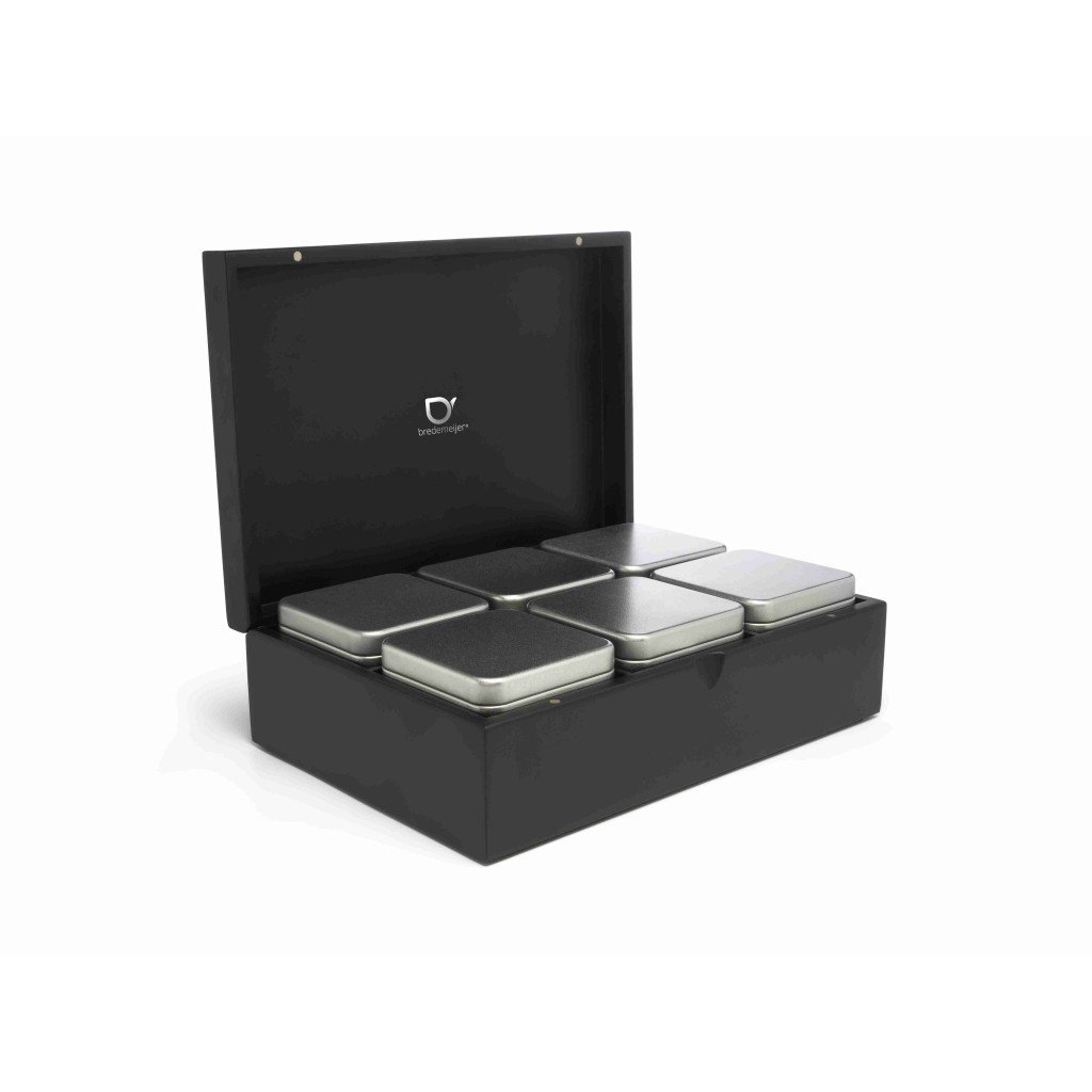 Theedoos voor losse thee, 6 blikken, zwart, Bredemeijer