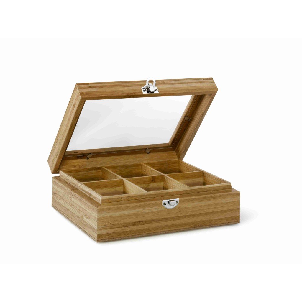 Theedoos, 6 vakken, met venster, bamboe, Bredemeijer