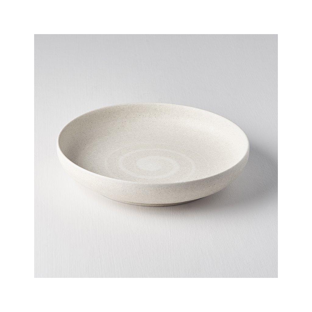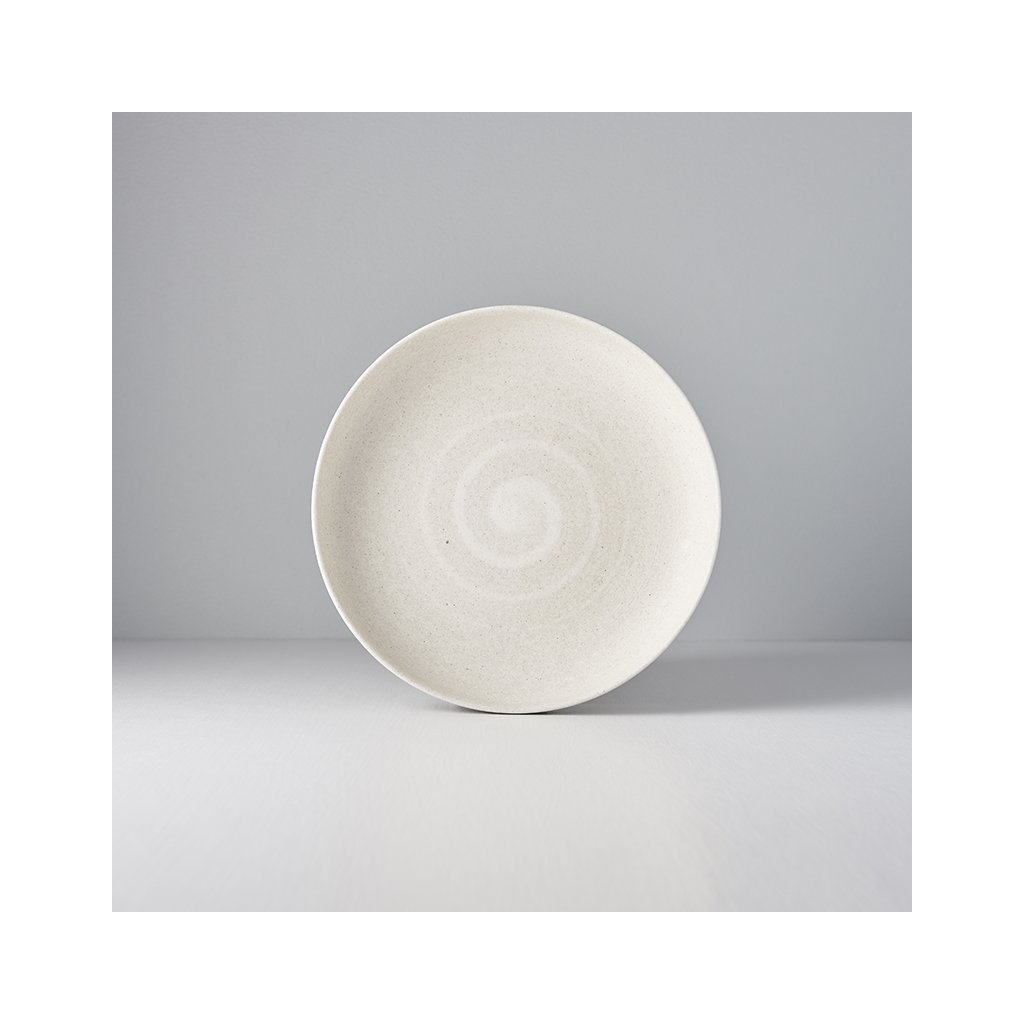 De Recycled-collectie heeft een combinatie van zand en wit met een duidelijk zichtbaar spiraalmotief. Het oppervlak van het vaatwerk is mat.