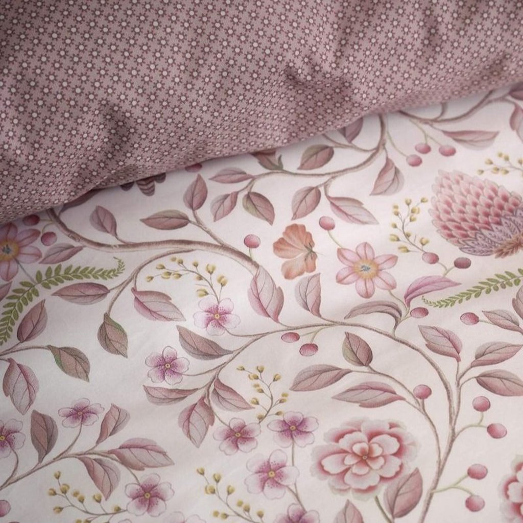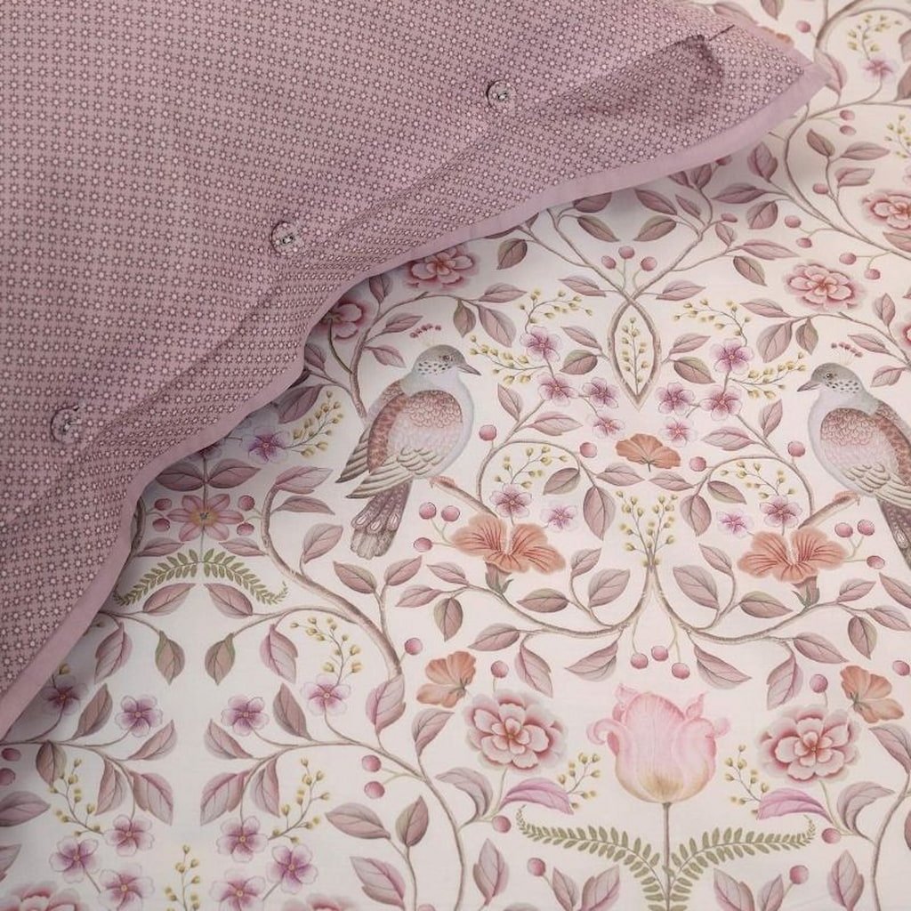 Eenpersoons beddengoedset GARDEN OF DOVE 140 x 200 cm, roze, katoen percale, Pip Studio