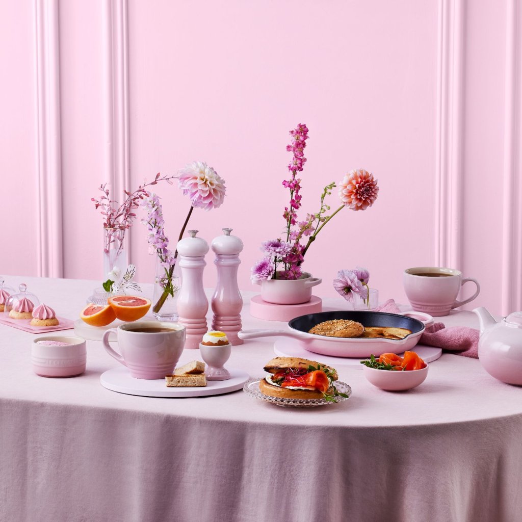 - De tint SHELL PINK brengt tederheid en vrouwelijke charme in uw interieur. Hij past prachtig bij neutrale tinten en pastelkleuren, zoals MERINGUE, SEA SALT of CHAMBRAY . Ook past hij goed bij ander serviesgoed Le Creuset in dezelfde tint.