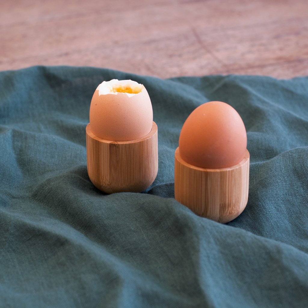 - de set van twee bamboe eierdopjes is de ideale keuze voor het stijlvol en praktisch serveren van gekookte eieren van alle formaten