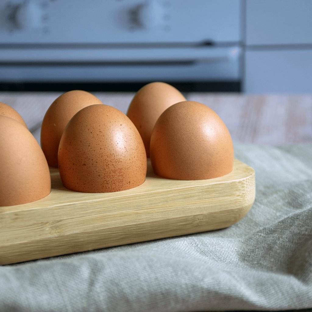 - Bamboe eierrek Pebbly is een praktische en esthetische oplossing om 6 eieren direct op het aanrecht te bewaren