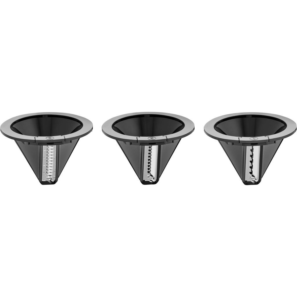 - Drie verwisselbare opzetstukken met scherpe roestvrijstalen Perfect Cut messen