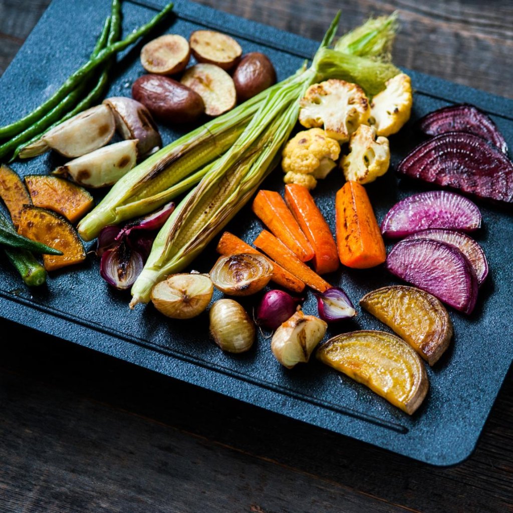 - Hierdoor behoudt de grill een gelijkmatige temperatuur over het hele oppervlak en kan hij snel reageren op een temperatuurdaling wanneer ingrediënten worden toegevoegd, zonder aanbranden of ongelijkmatig bruin worden.