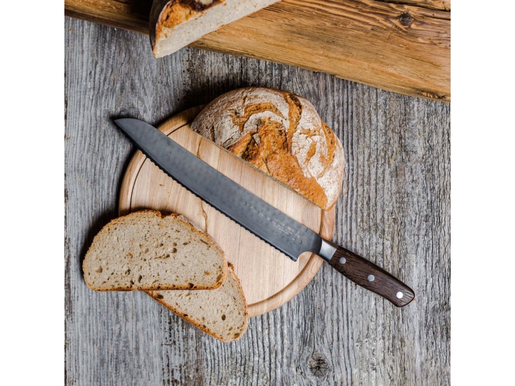 - het gekartelde lemmet snijdt gemakkelijk door zelfs harde korsten zonder het brood plat te drukken