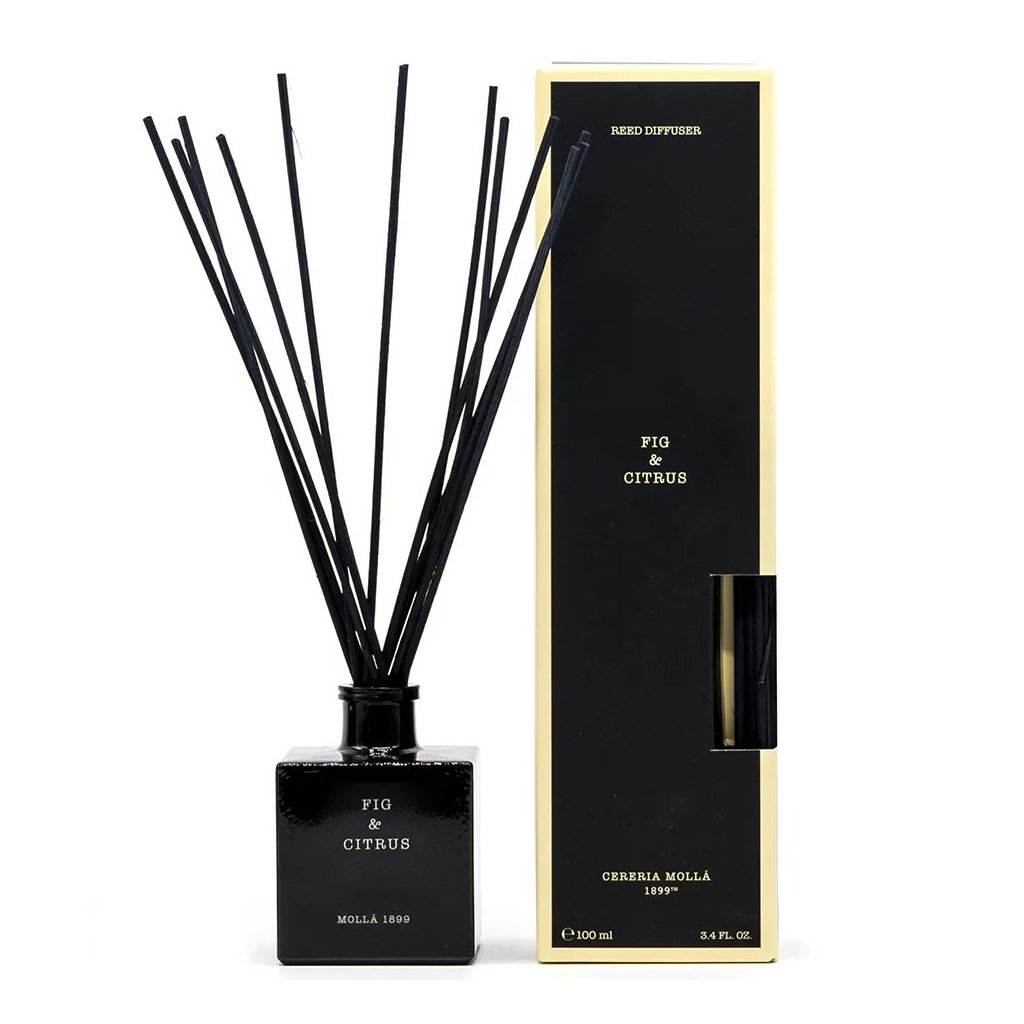 Geurstokjes 25 cm, set van 12 stuks, zwart, rotan, Cereria Mollá