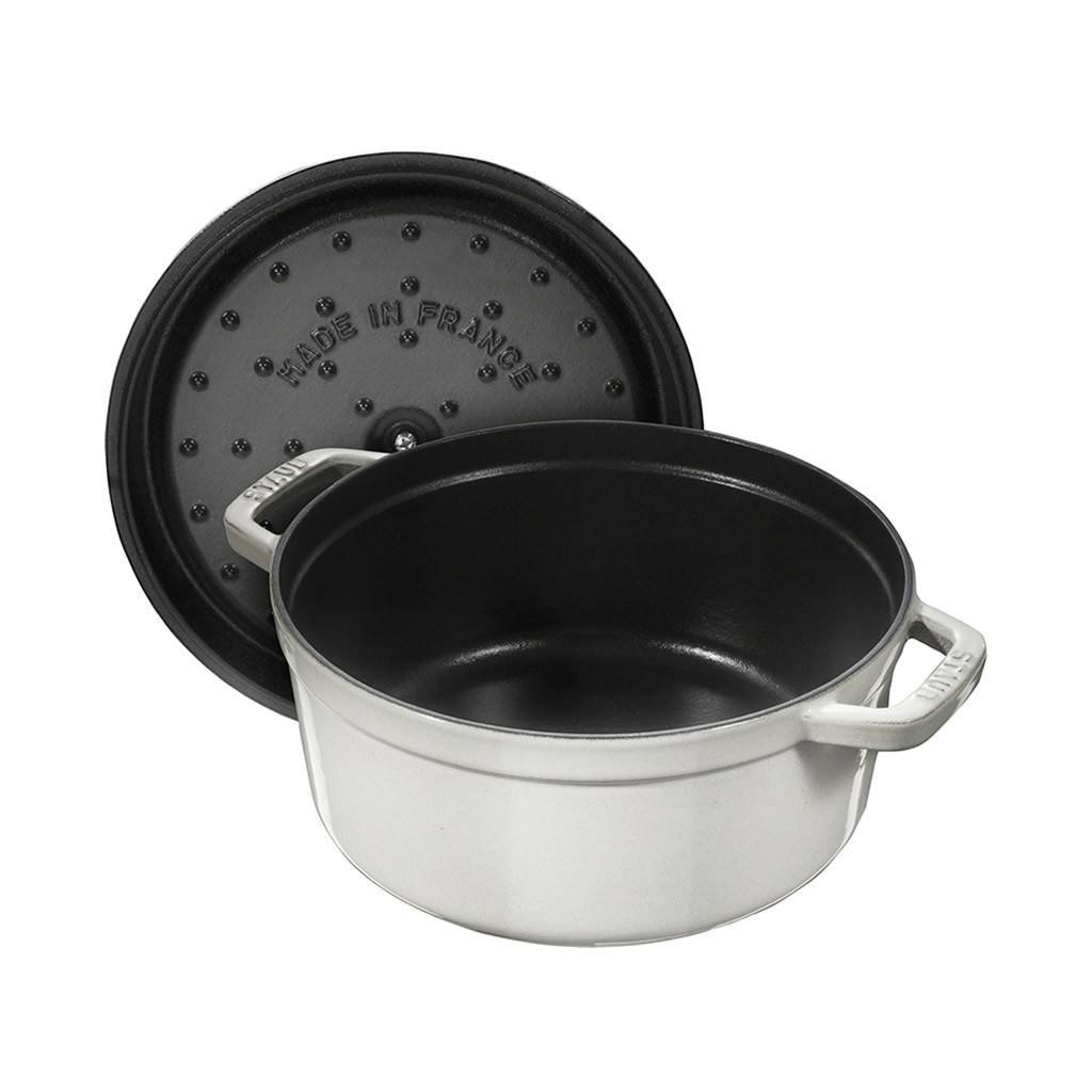 De geëmailleerde binnenkant is matzwart en zorgt ervoor dat alles wat u erin kookt heerlijk en delicaat is. Een gesloten circulatie en kleine uitsteeksels aan de onderkant van het deksel creëren ideale omstandigheden voor langzaam garen en smoren. Vooraanstaande chef-koks houden van Staub gietijzeren kookgerei vanwege de buitengewone eigenschappen: het houdt de warmte lang vast, verbetert de smaak van het voedsel en is vrijwel onverwoestbaar.