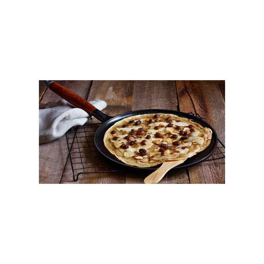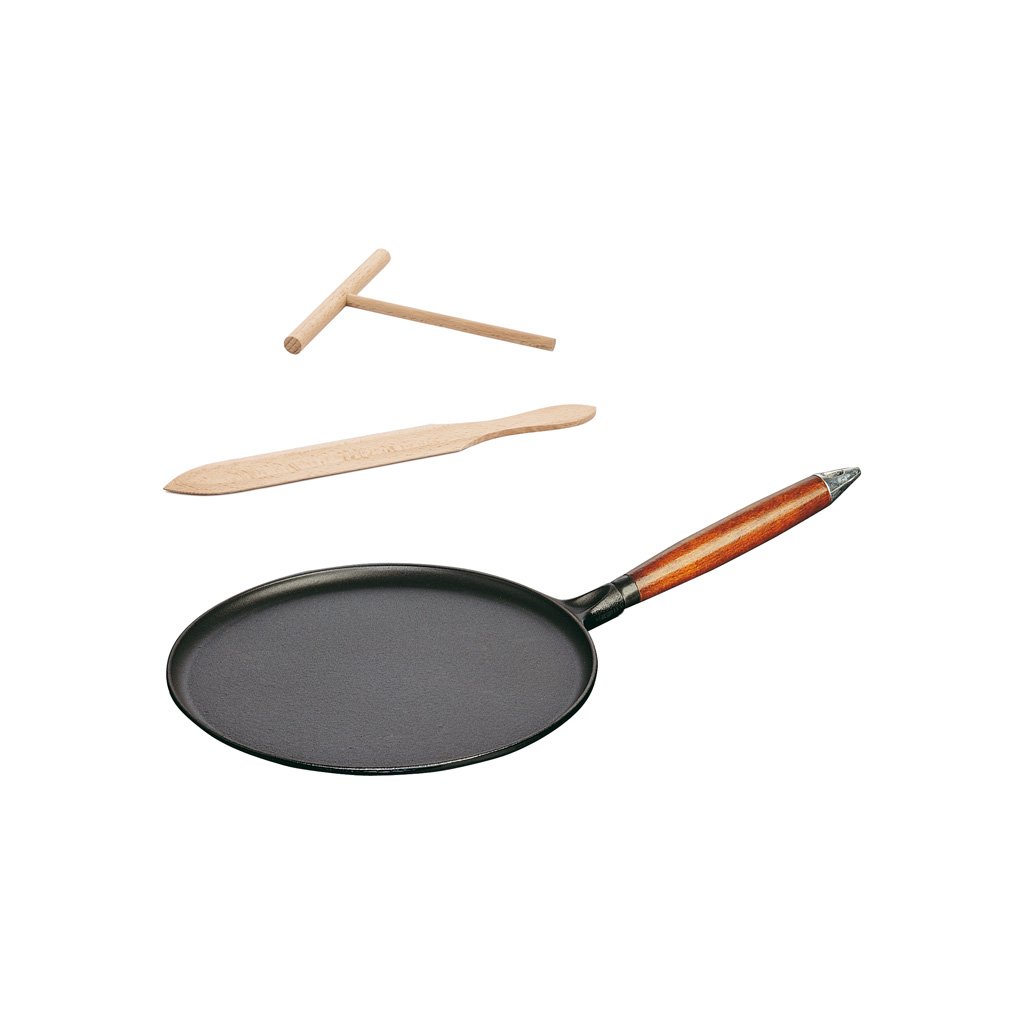 Crepe-pan 28 cm, met crêpespatel en -spreider, houten handvat, gietijzer, Staub