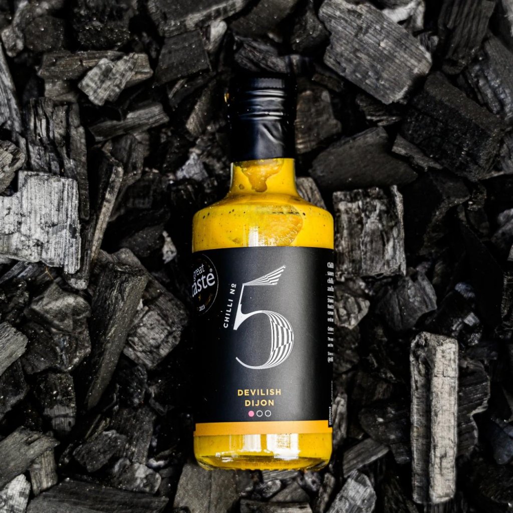 - DEVILISH DIJON van Chilli No5 is een kenmerkende pittige mosterdsaus die traditionele Dijon-mosterd combineert met een pittige mix van chilipepers voor de ultieme smaakbeleving.