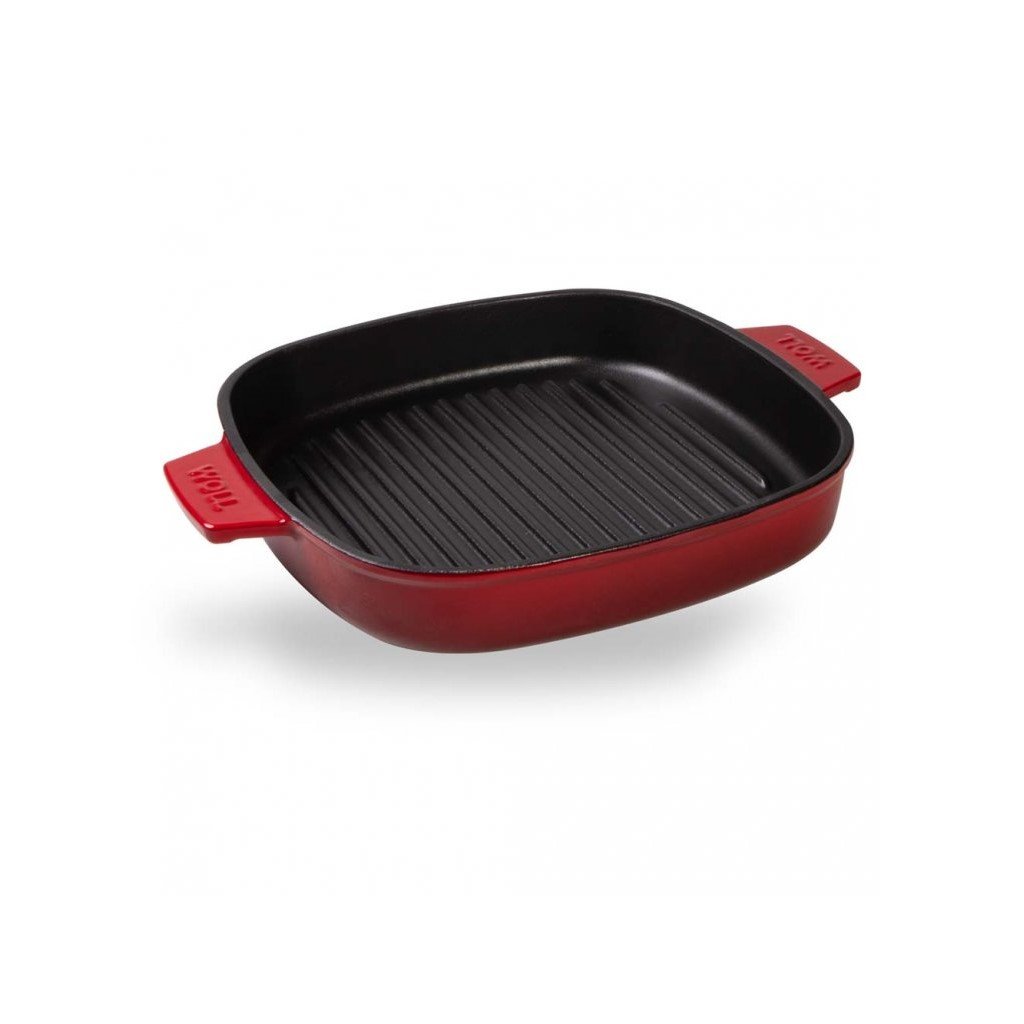 De Iron grillpan van 24x24 cm is gemaakt van gietijzer, dat de warmte perfect geleidt en vasthoudt, waardoor het energieverbruik tijdens het koken daalt. Het heeft een uniek gietijzeren sleufdeksel dat kleiner is dan de pan, met grillstrips aan de binnenkant en gewoon direct op het vlees ligt als u de pan gebruikt. De ijzeren pan is geschikt om direct vanuit de oven op tafel te zetten.