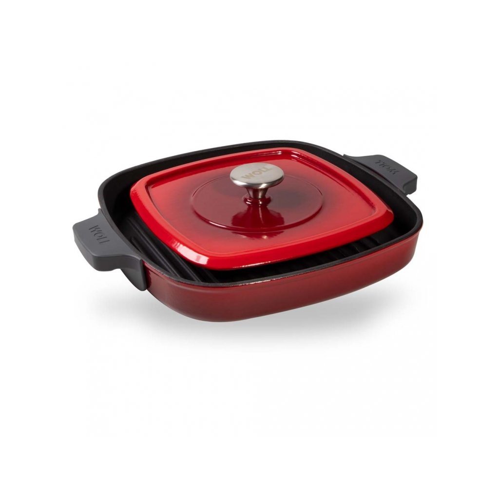 Grillpan IND 24 cm rood, met deksel, ijzer, Woll
