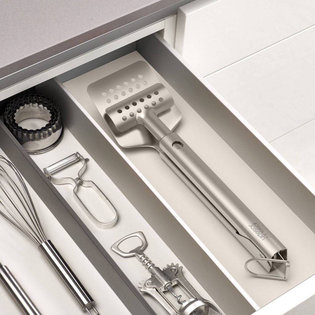 - Grilltang met de spatel Joseph Joseph GRILLOUT is een praktisch 2-in-1 hulpmiddel om voedsel tijdens het grillen gemakkelijk vast te pakken, op te tillen en om te draaien.