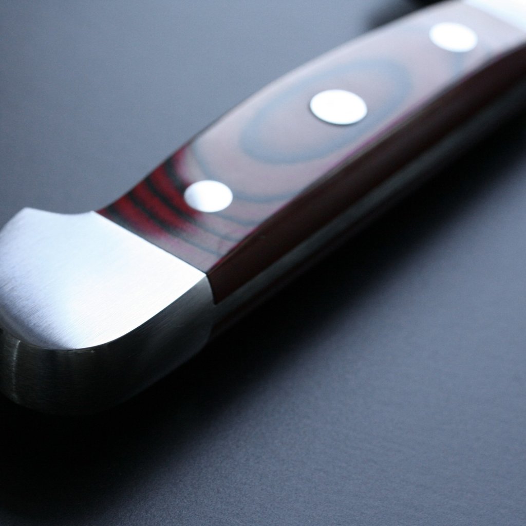 - ergonomisch gevormd handvat met micarta composiet, drie klinknagels en een opvallende afwerking om altijd veilig te kunnen werken