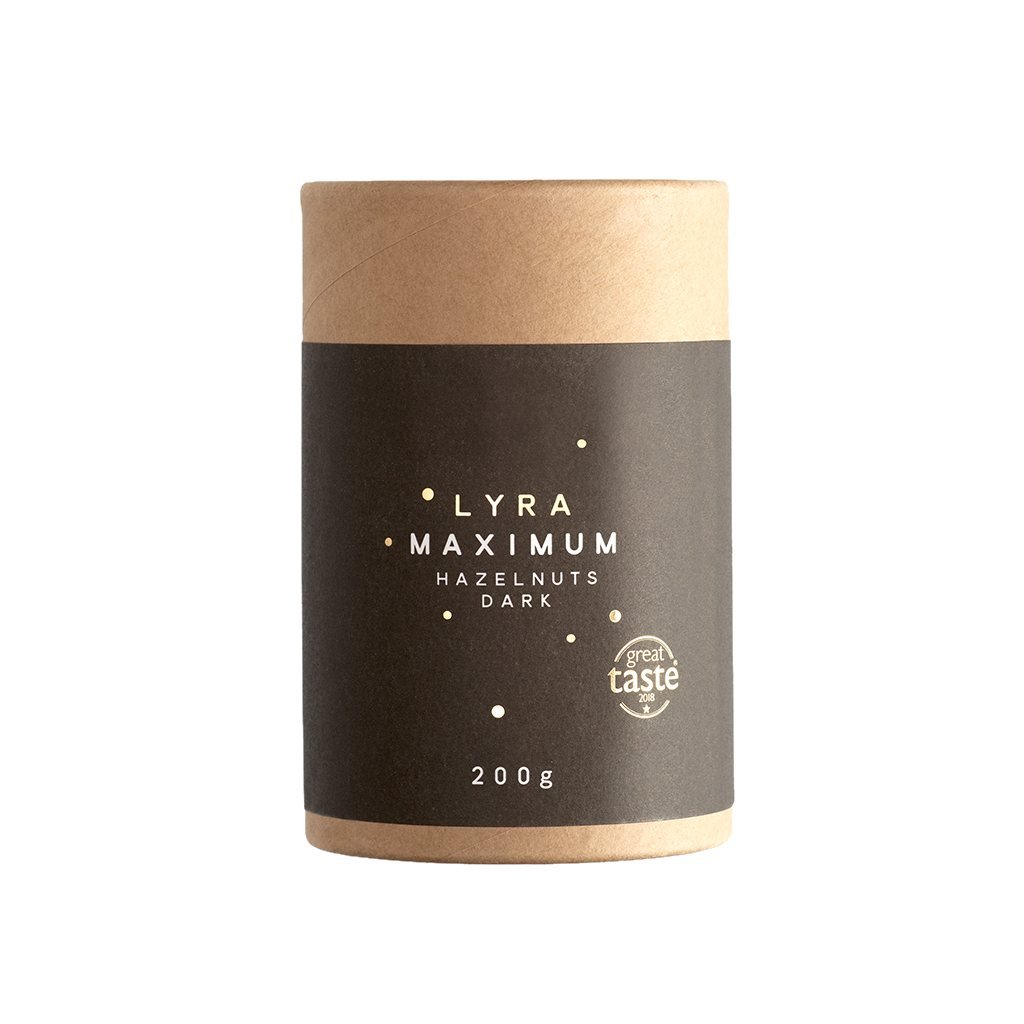 Hazelnoten in nougat en pure chocolade MAXIMUM 200 g, LYRA