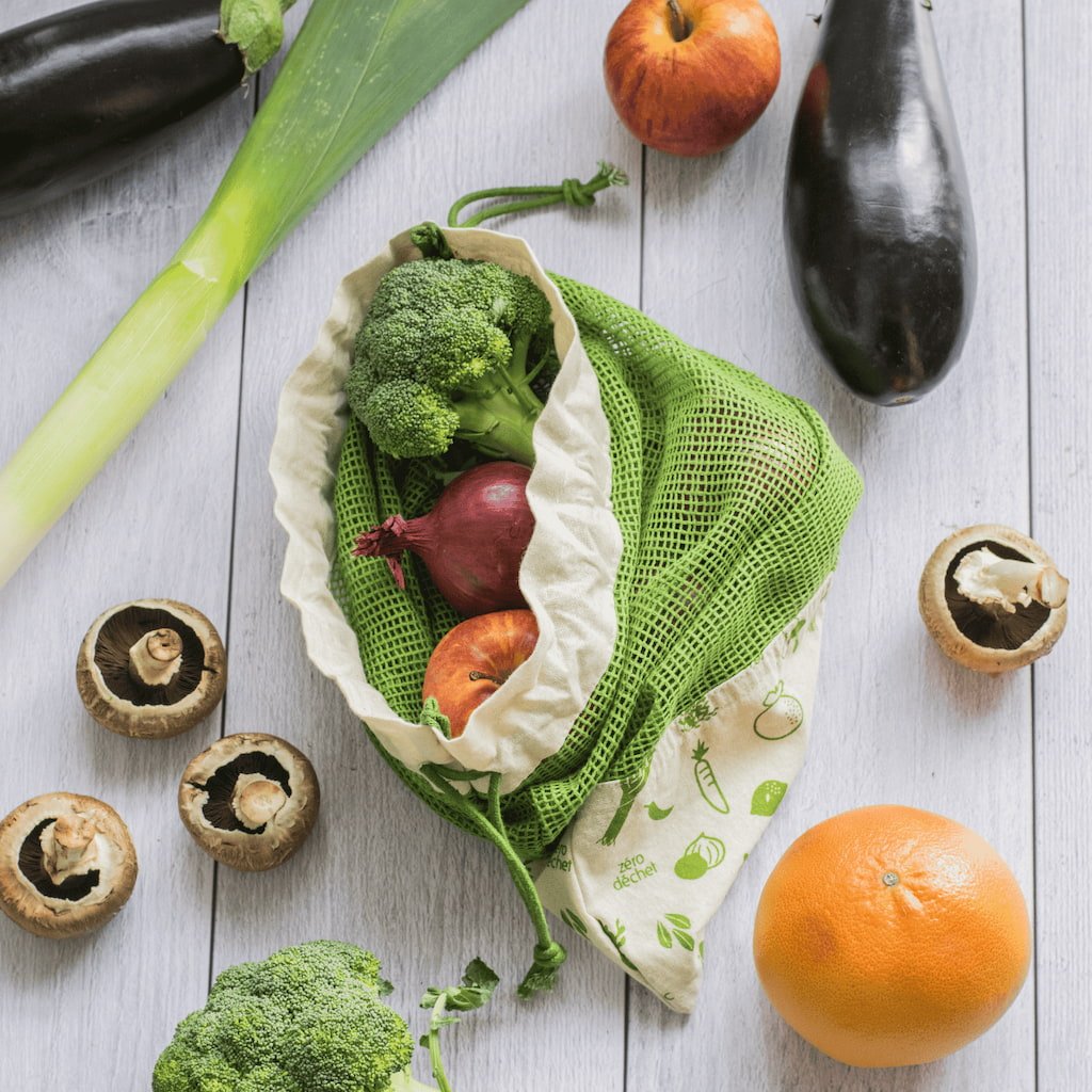 - De groene nettas Pebbly van biologisch katoen is een praktische hulp bij het verpakkingsvrij winkelen van groente en fruit