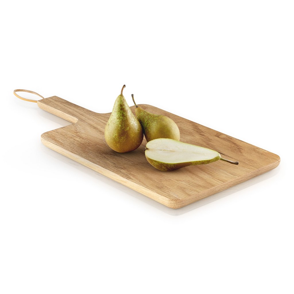 Houten snijplank Scandinavische keuken Deens bedrijf Eva Solo is gemaakt van massief eikenhout. De verschillende houtnerven maken elk exemplaar origineel. Snijplank kan worden gebruikt voor het snijden van groenten, vlees, maar ook voor het serveren van worst of kaas.