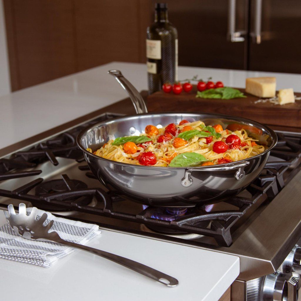 - De drielaagse constructie met een ProCore aluminium kern zorgt voor 35% hogere thermische geleidbaarheid; warmte verspreidt zich snel en gelijkmatig over het gehele oppervlak van de pan.