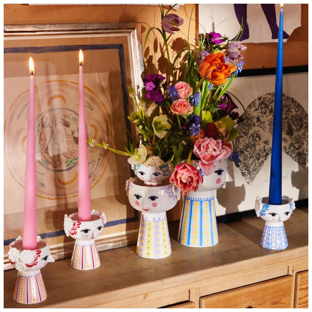 - opvallend gekleurde kaarsenhouder voor één zuilkaars